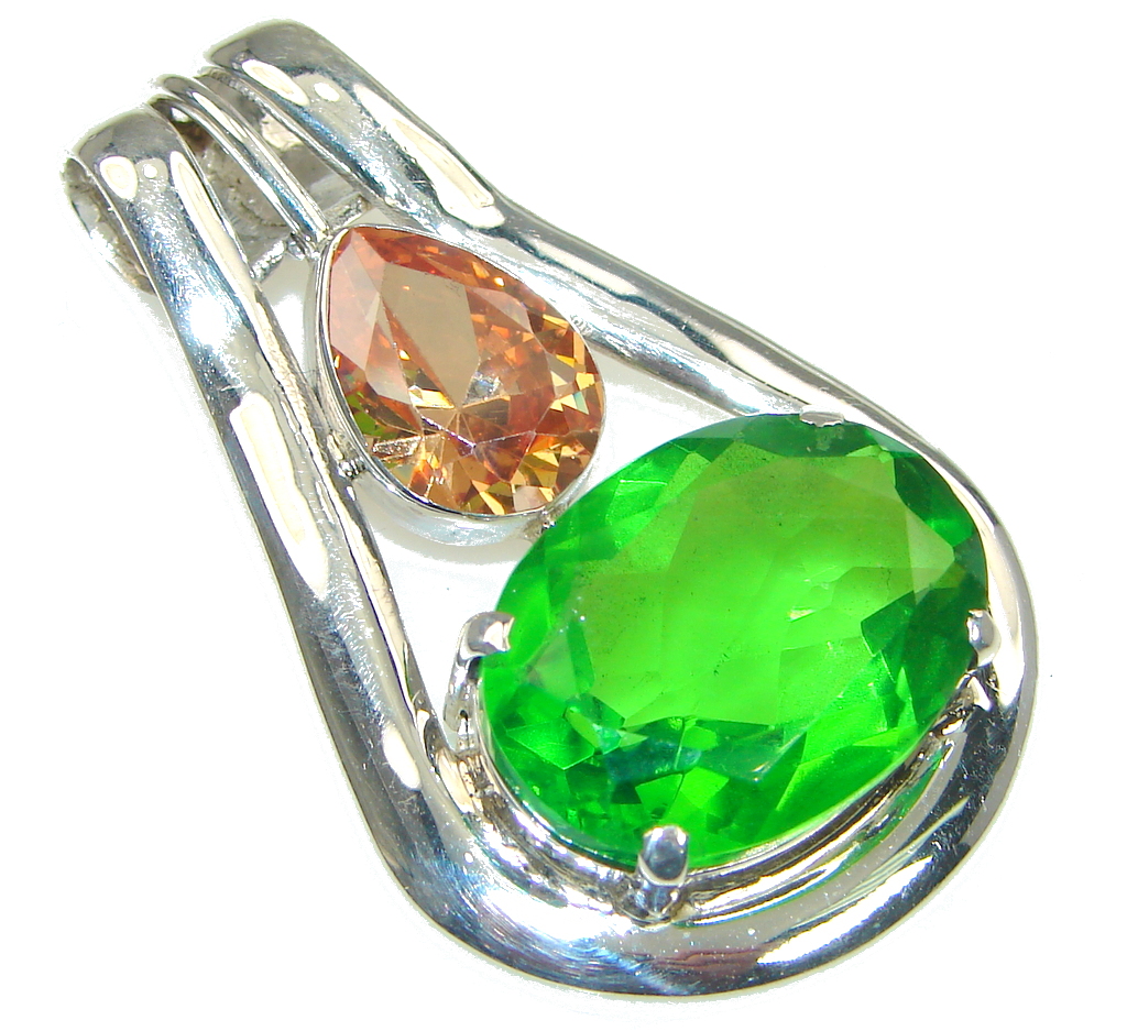 Tropical Glow! Created Green Peridot Sterling Silver pendant