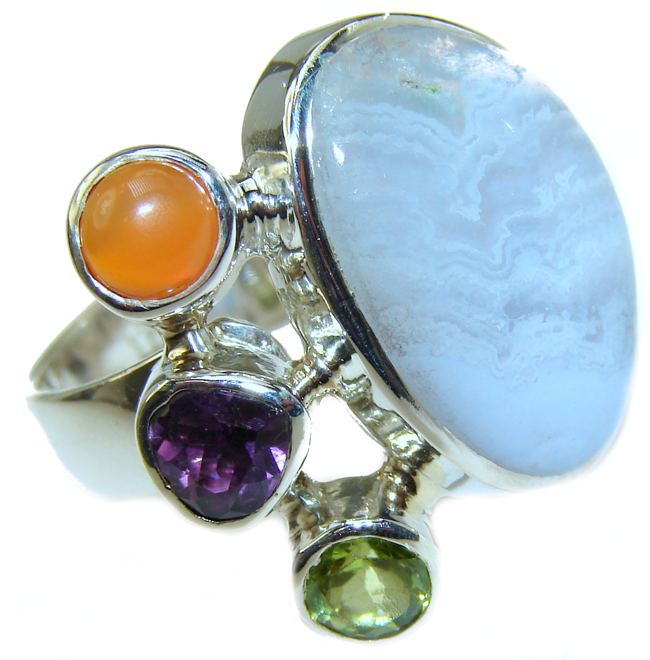 Excellent quality Crazy Lace Agate .925 Sterling Silver Ring s. 7 adjustable