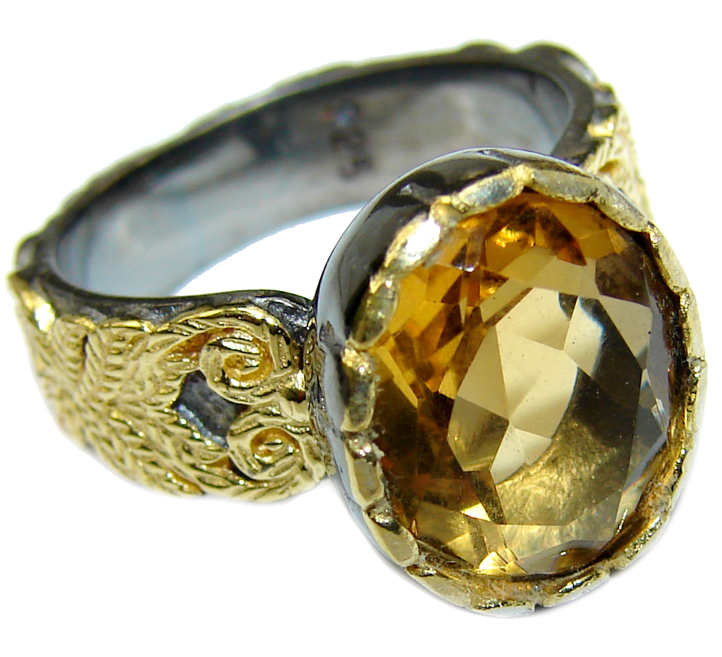 Vintage Style Natural Citrine .925 Sterling Silver handcrafted Ring s. 6