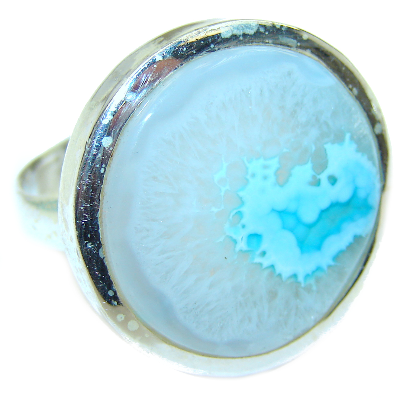 Natural Larimar .925 Sterling Silver handcrafted Ring s. 5 1/4