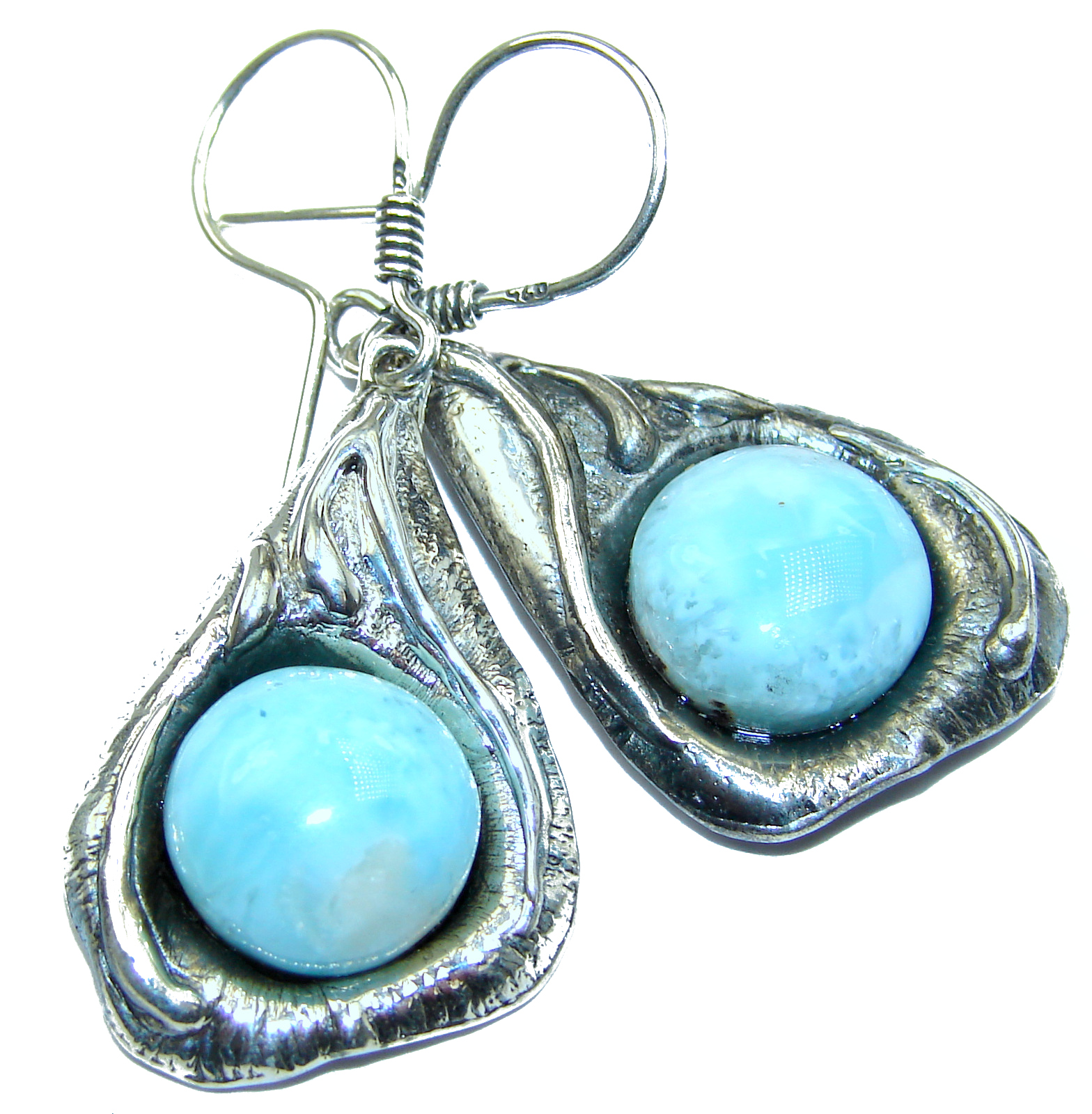 Huge Precious genuine Blue Larimar .925 Sterling Silver handmade earrings