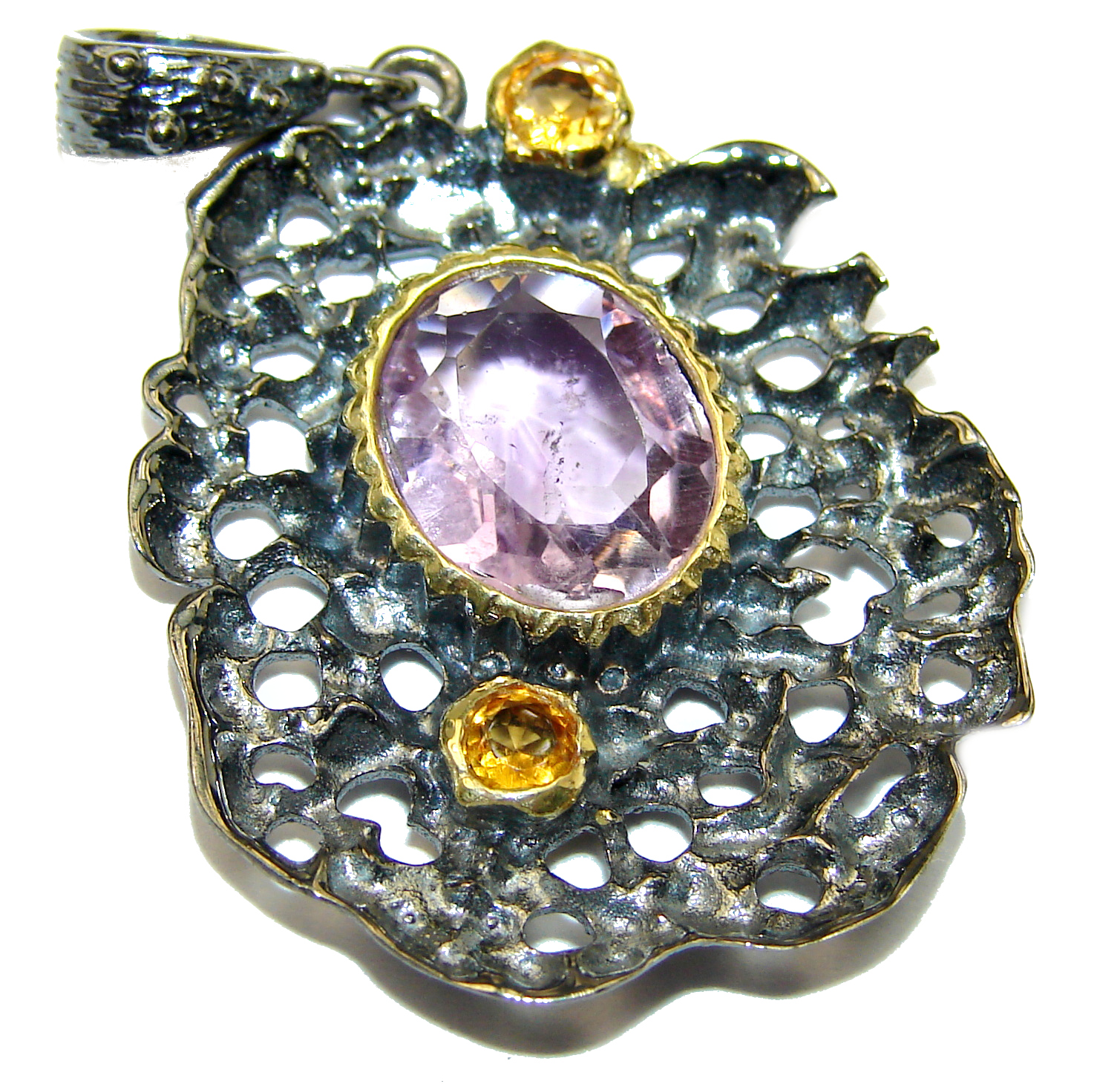 Unique Design Natural Amethyst .925 Sterling Silver handmade Pendant