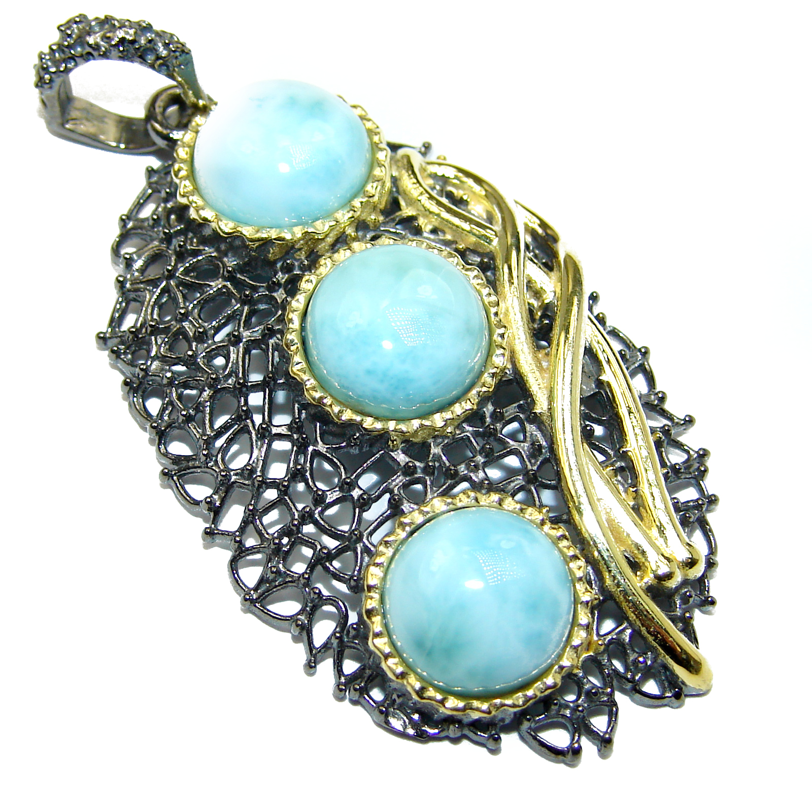 Perfectly Blue Larimar two tones .925 Sterling Silver handmade pendant