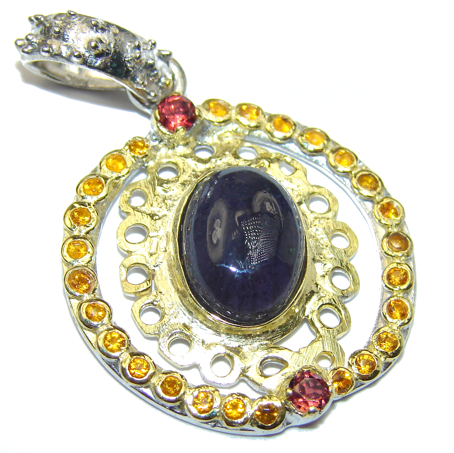 Beautiful genuine Garnet 14K Gold over .925 Sterling Silver handcrafted Pendant