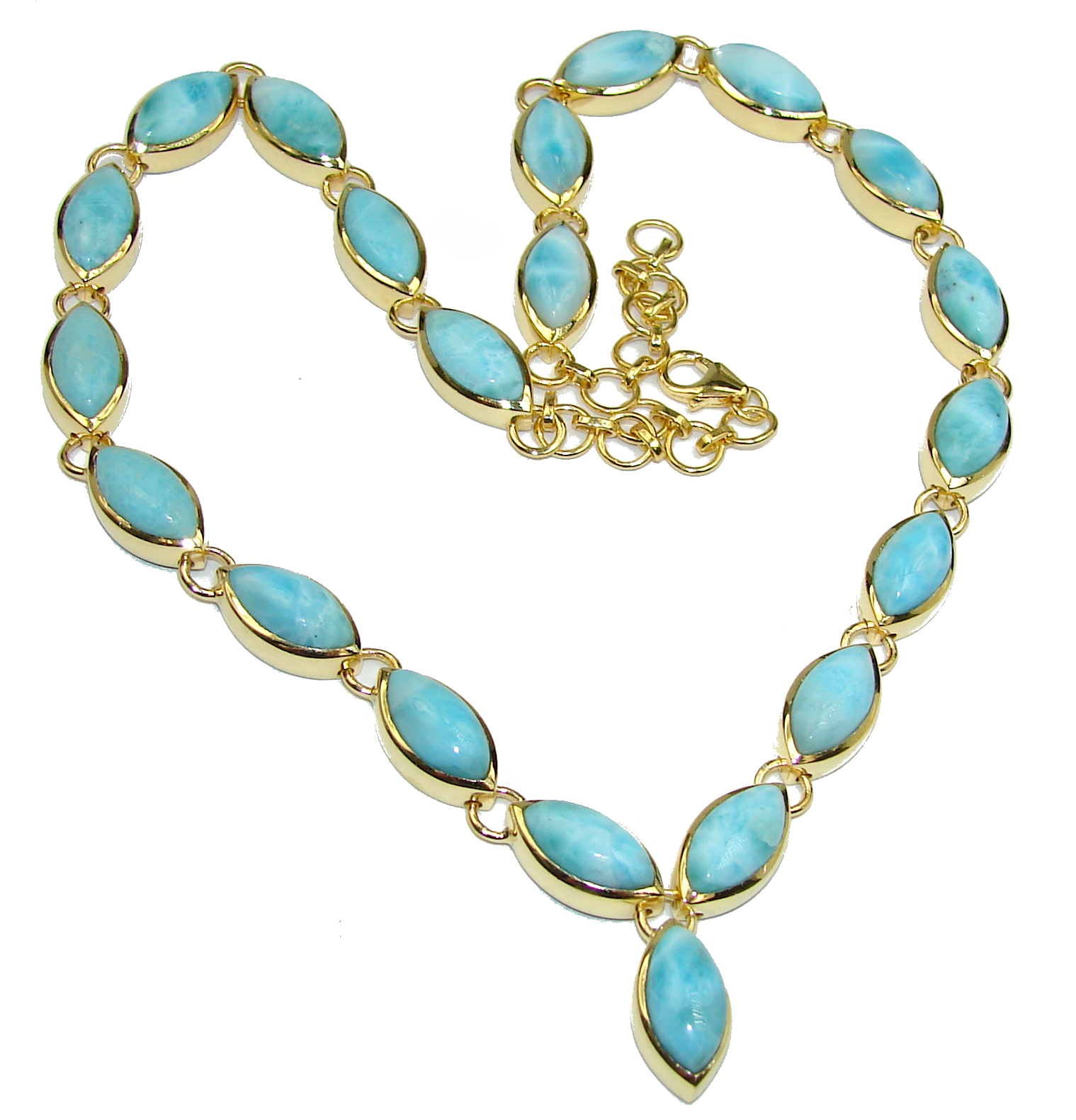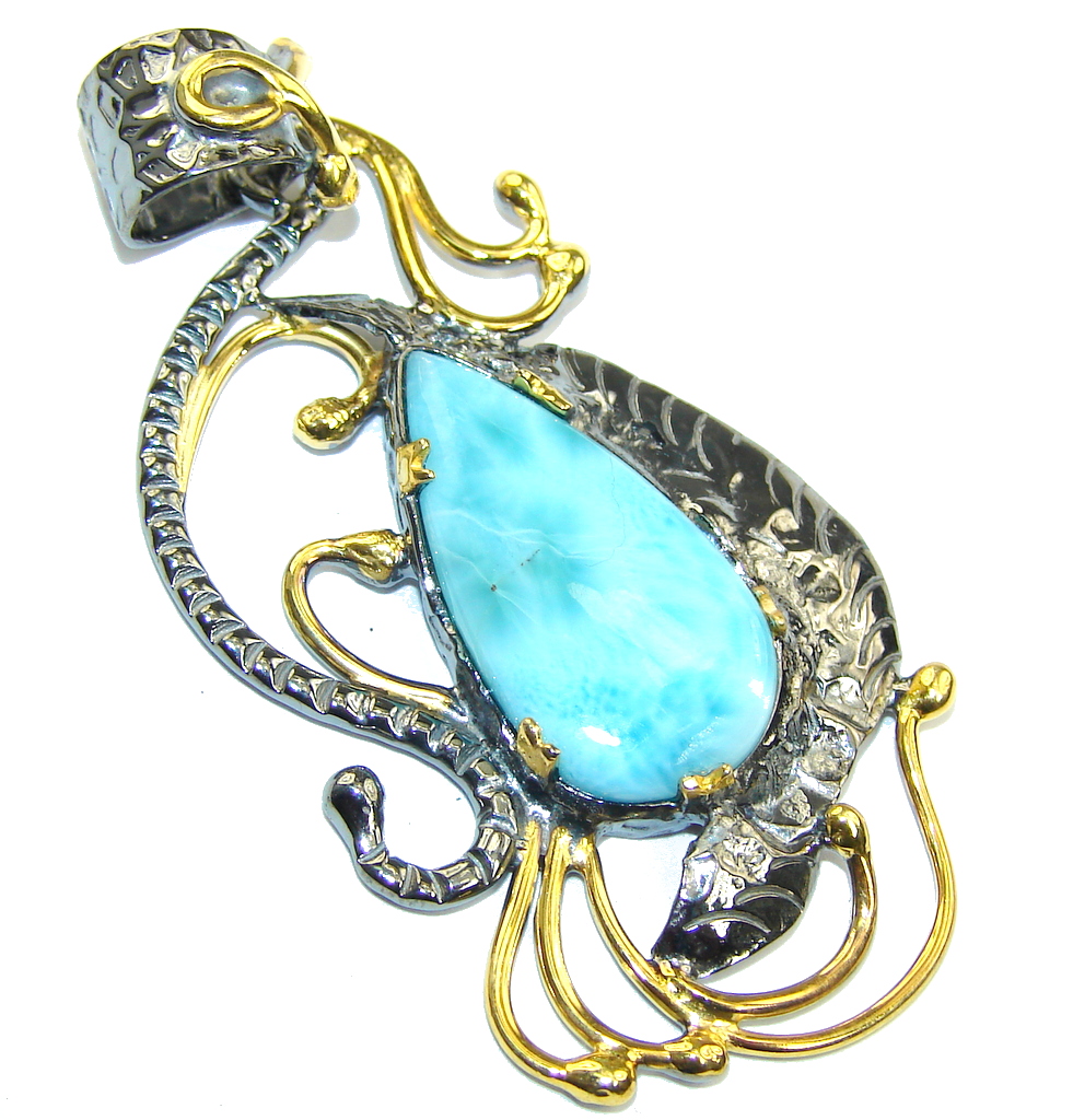 Great Masterpiece genuine Larimar 14K Gold over .925 Sterling Silver handmade necklace