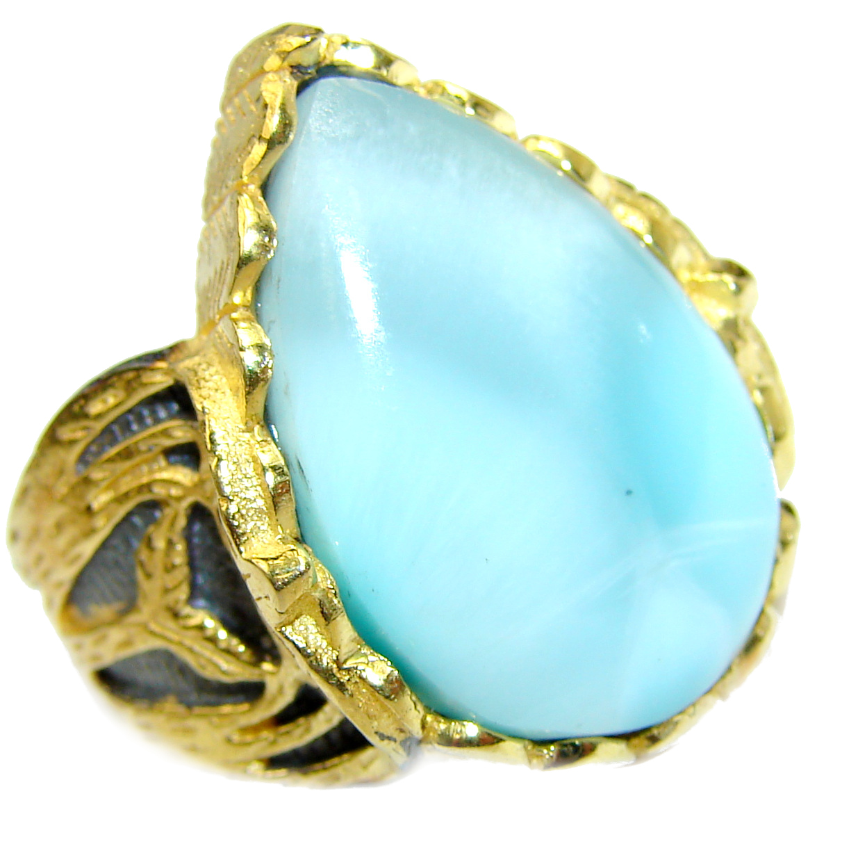 Vintage Design Natural Larimar .925 Sterling Silver handcrafted Ring s. 6 1/4