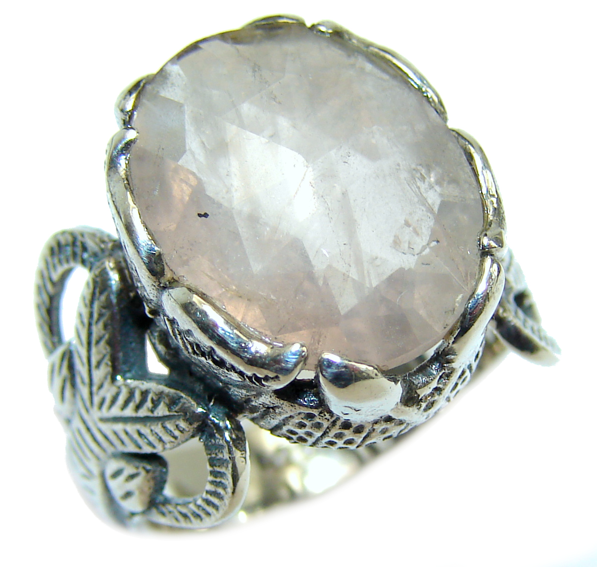 Huge Exclusive genuine Rose Quartz .925 Sterling Silver handcrafted earrings