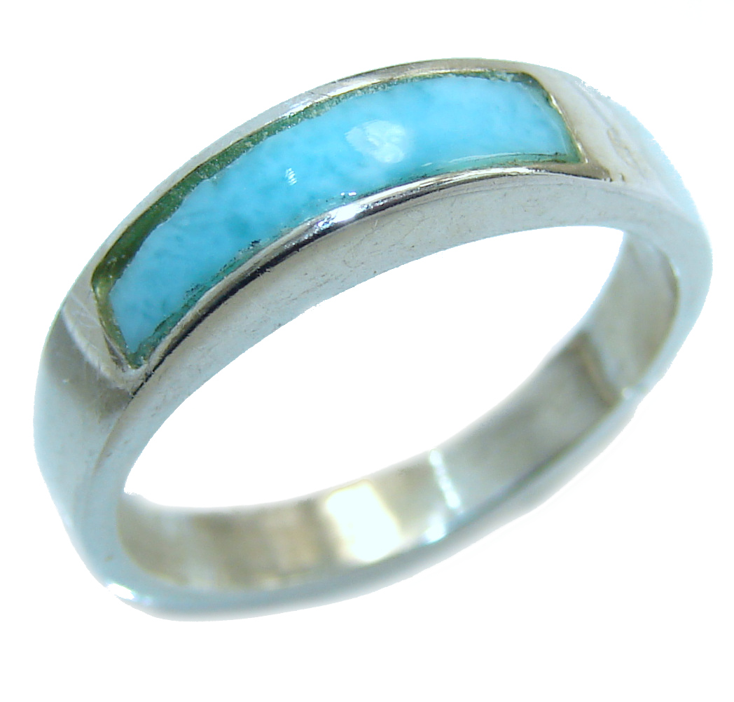 Natural inlay Larimar .925 Sterling Silver handcrafted Ring s. 7 1/4