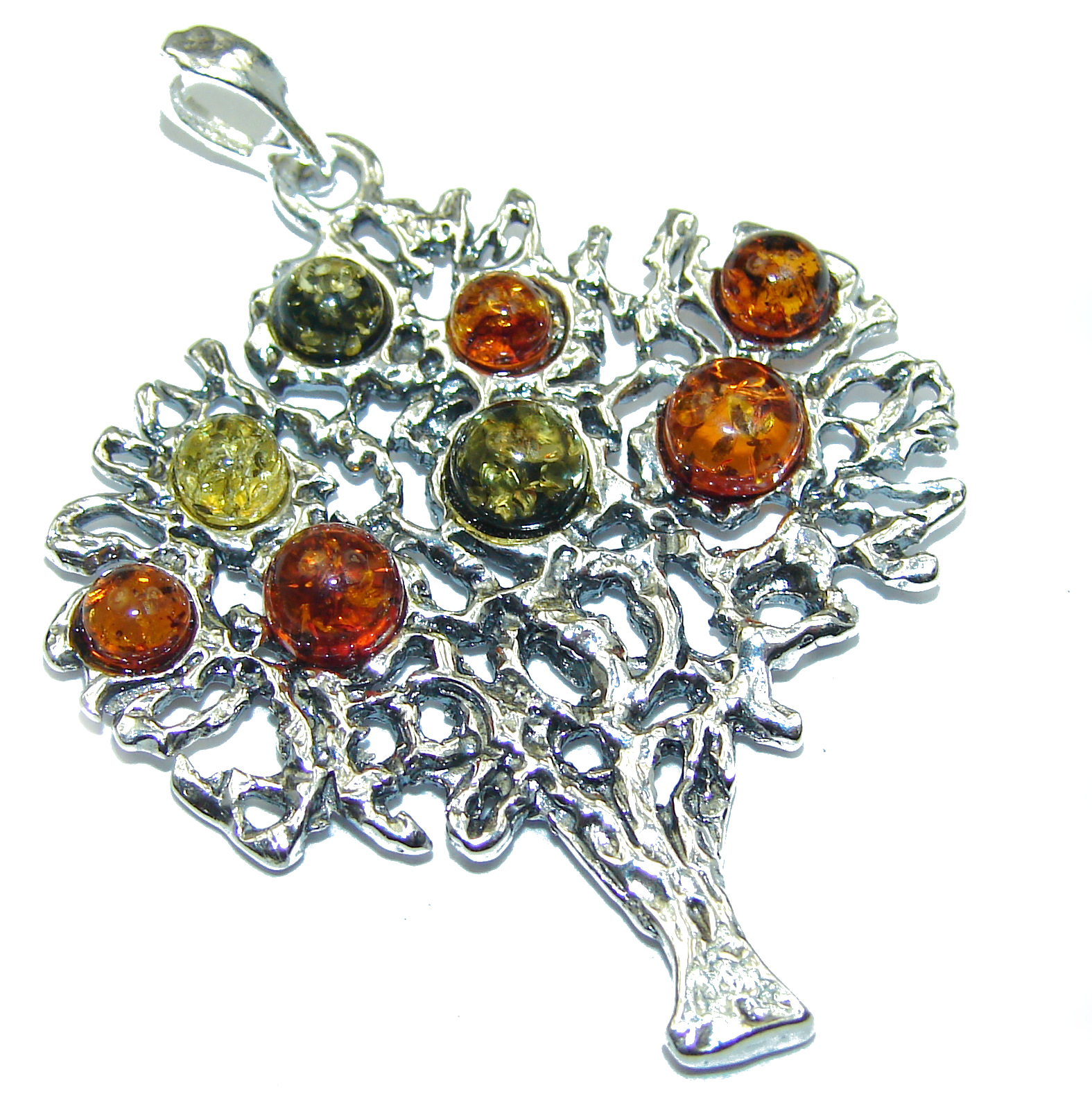 Family Tree Multicolor Baltic Amber .925 Sterling Silver handcrafted Pendant