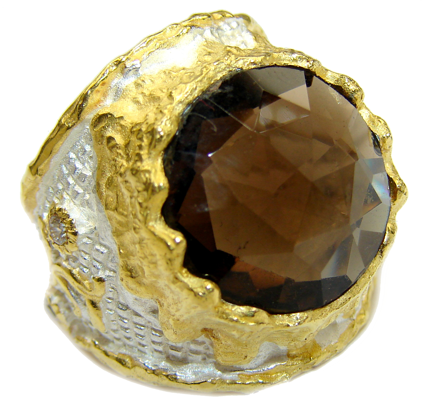 Bold Champagne Smoky Topaz 14K Gold over .925 Sterling Silver Ring size 6