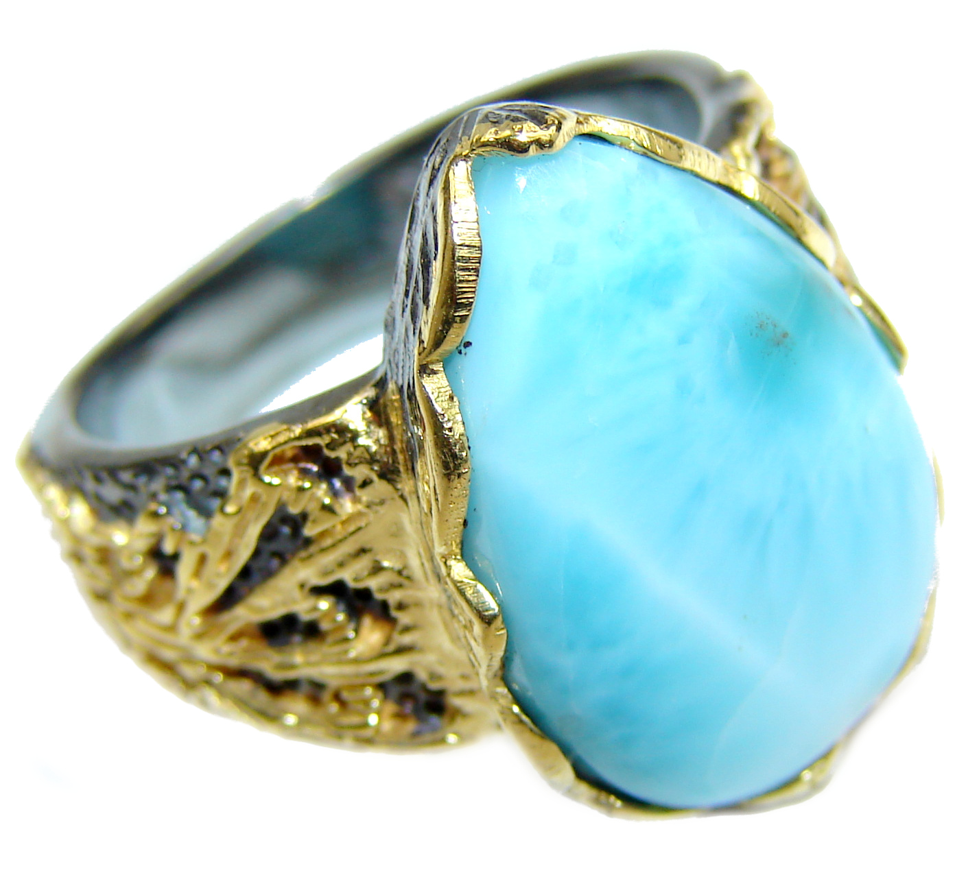 Vintage Design Natural Larimar .925 Sterling Silver handcrafted Ring s. 8