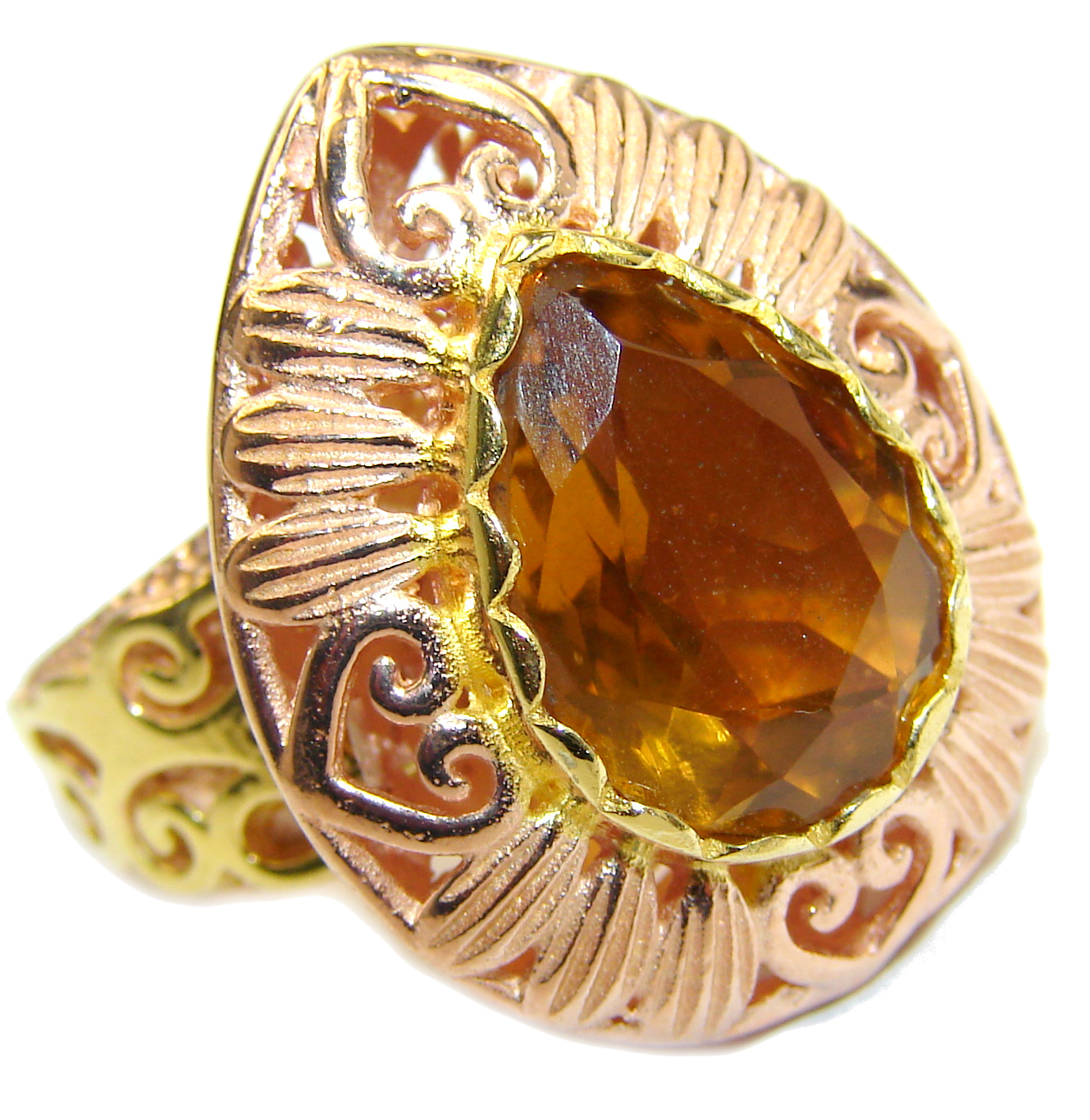 Spectacular 25 ct. Citrine 14K Gold over .925 Sterling Silver handcrafted Ring s. 8