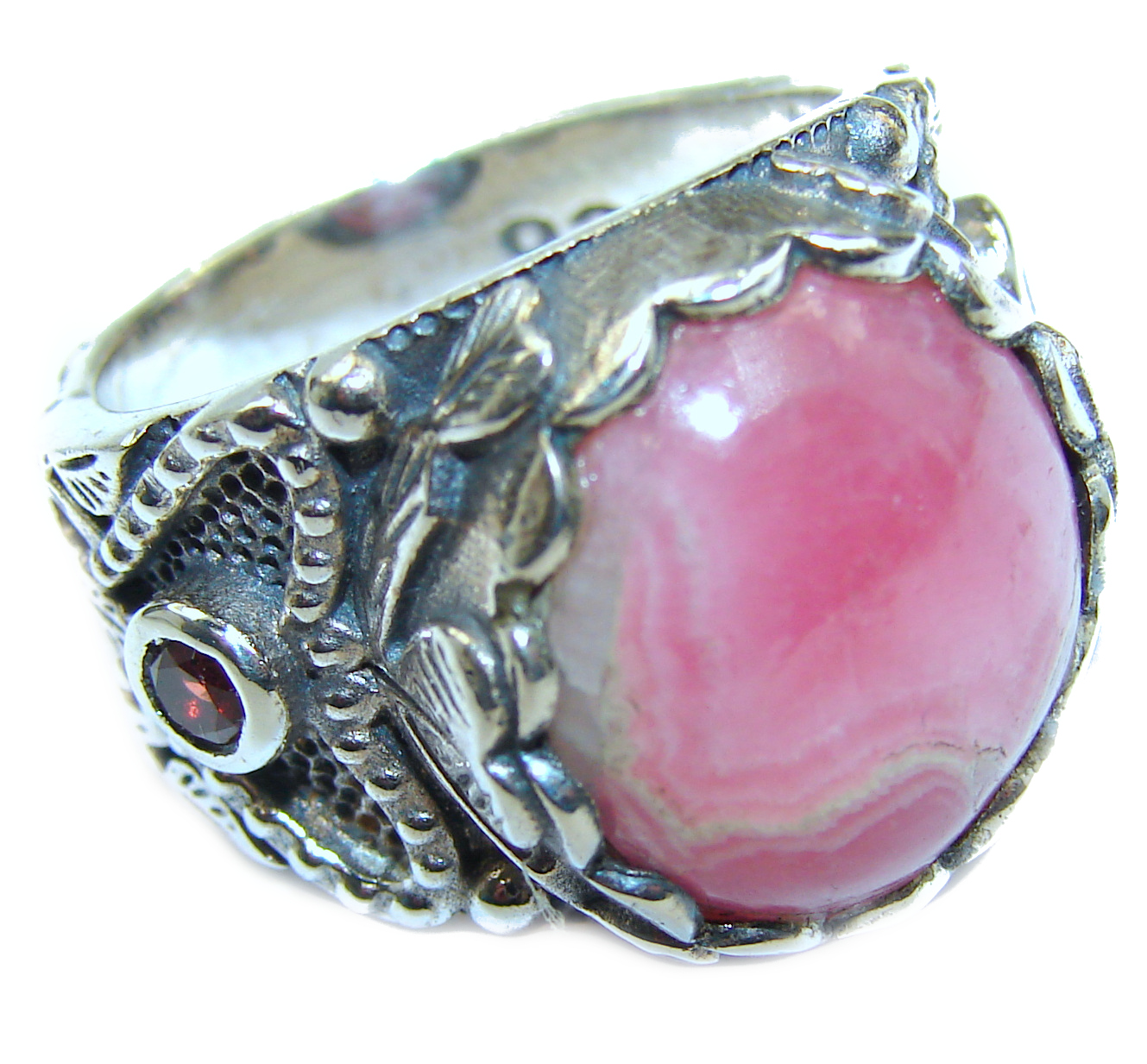 Argentinian Rhodochrosite .925 Sterling Silver handmade ring size 8