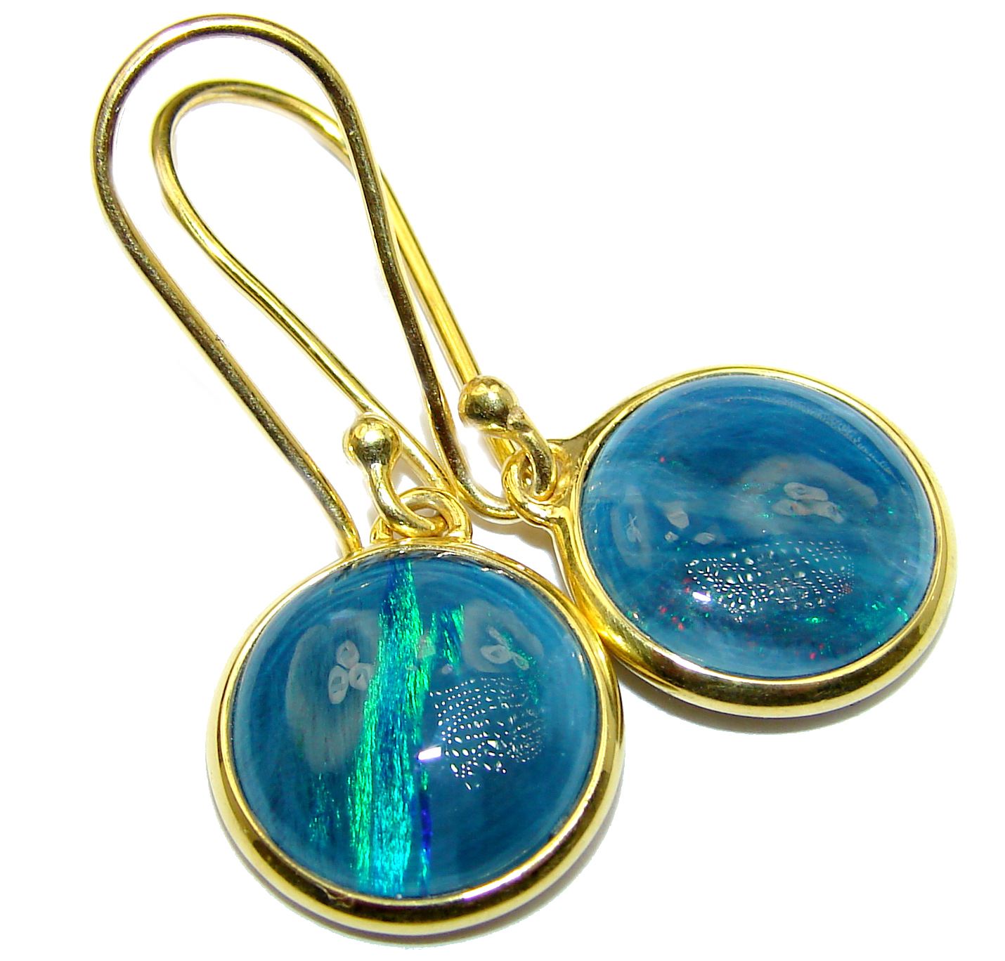 Classy Design Doublet Opal Gold over .925 Sterling Silver handmade earrings