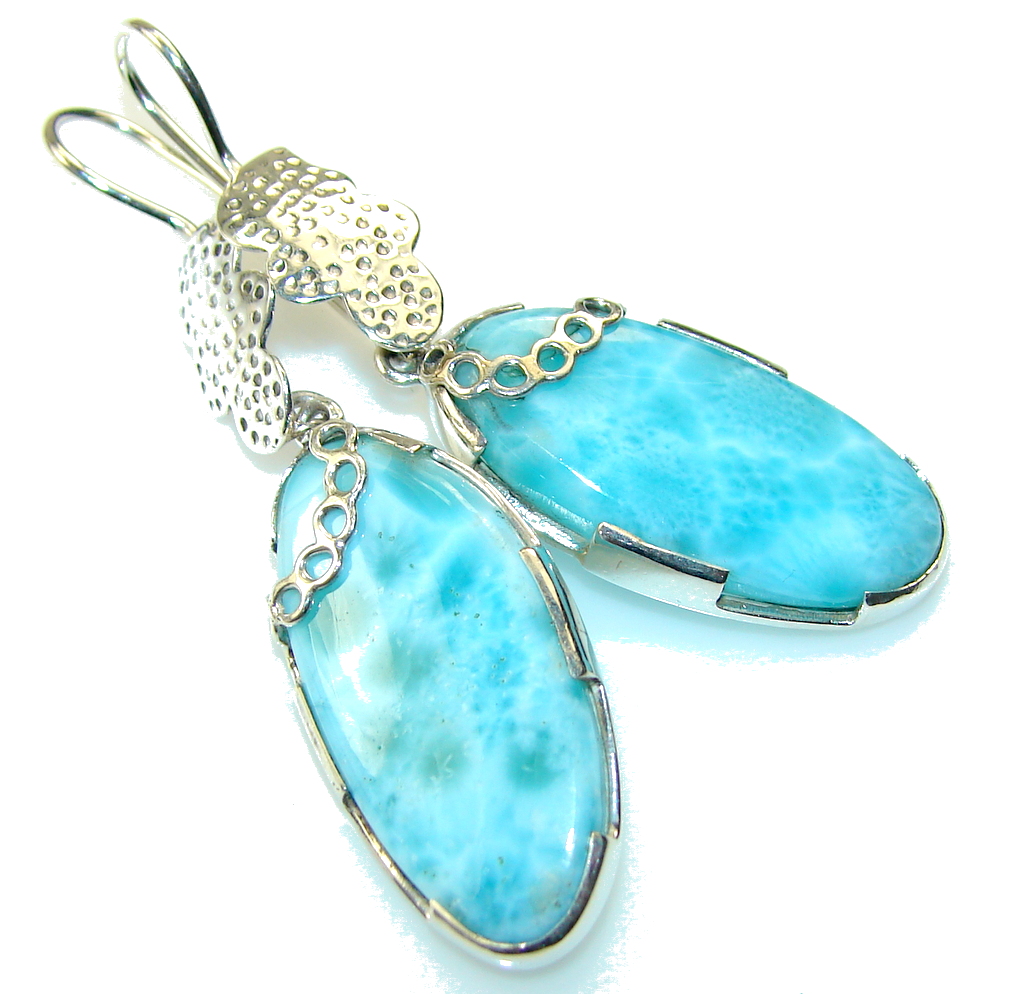 Fabulous DEsign!! Blue Larimar Sterling Silver earrings
