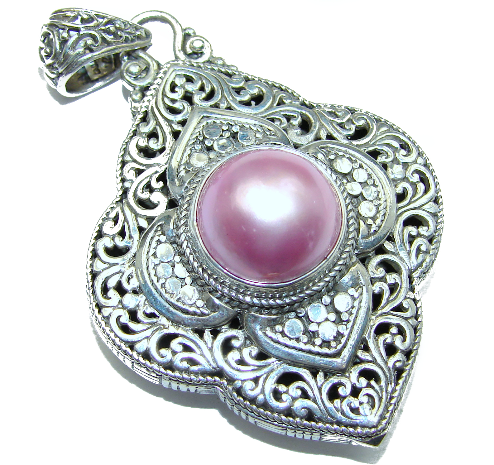 Prosperity and Fortune Pink Mabe Pearl .925 Sterling Silver Bali Handcrafted pendant