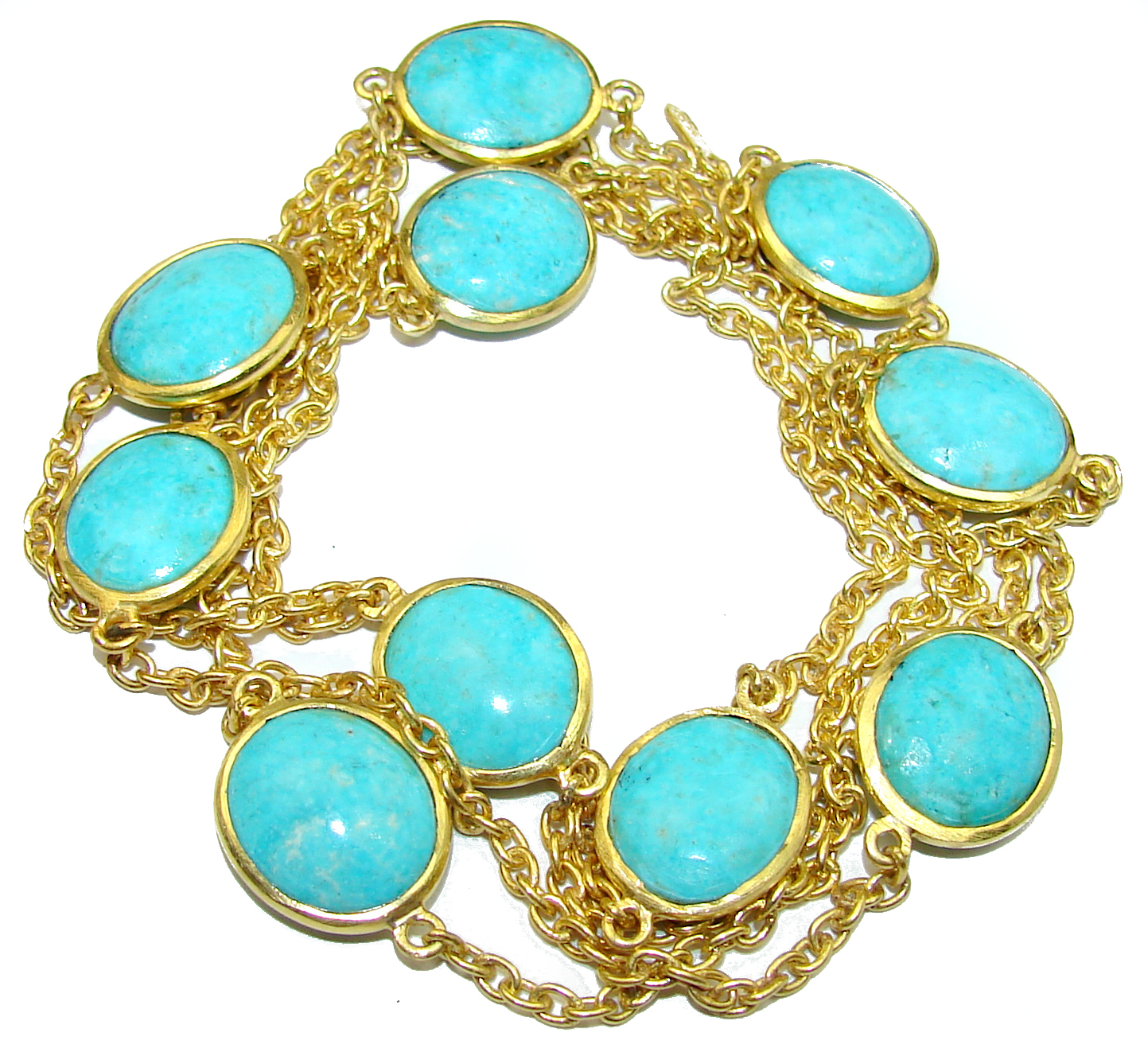 36 inches genuine Sleeping Beauty Turquoise .925 Sterling Silver handmade station Necklace