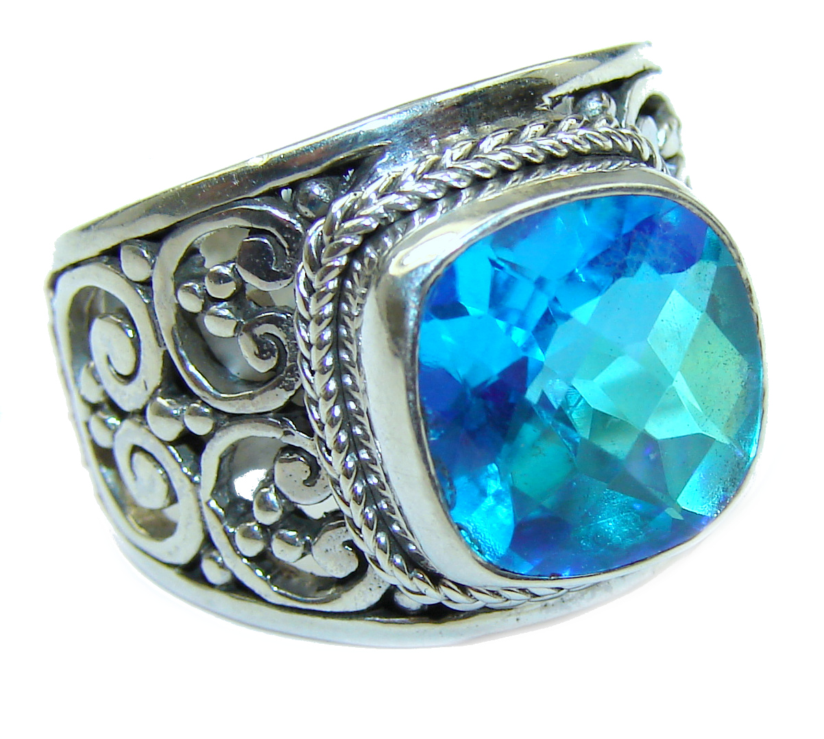 Bali Design Blue Aquamarine Topaz .925 Sterling Silver handmade ring s. 8