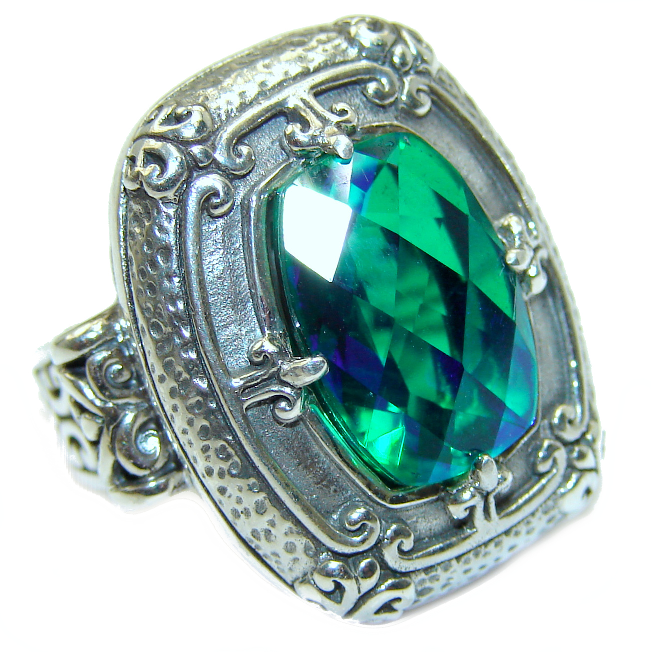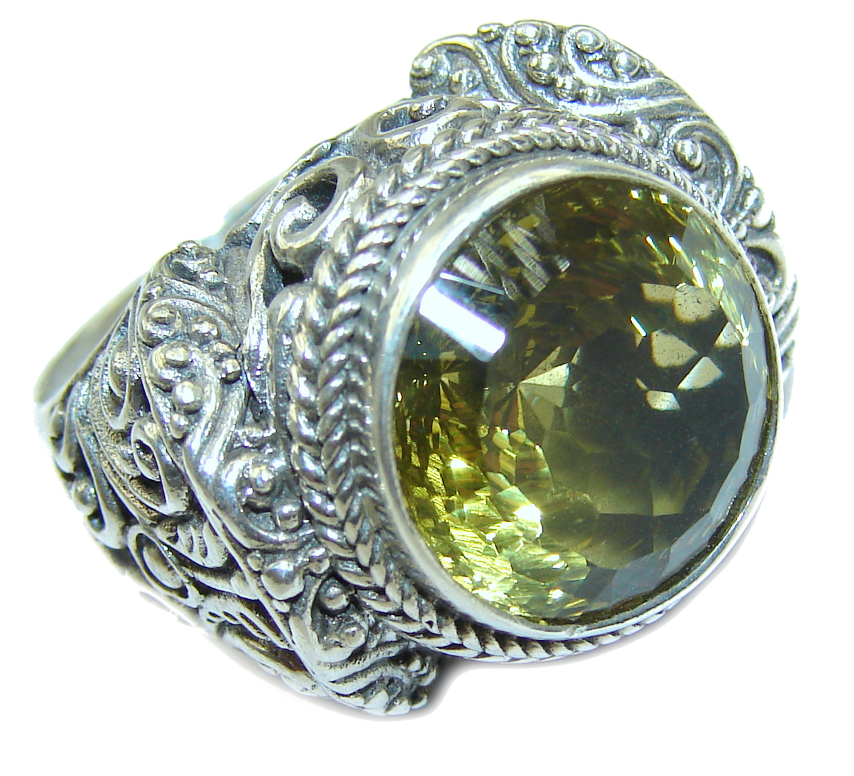 Exotic green Topaz .925 Sterling Silver handcrafted Ring s. 8