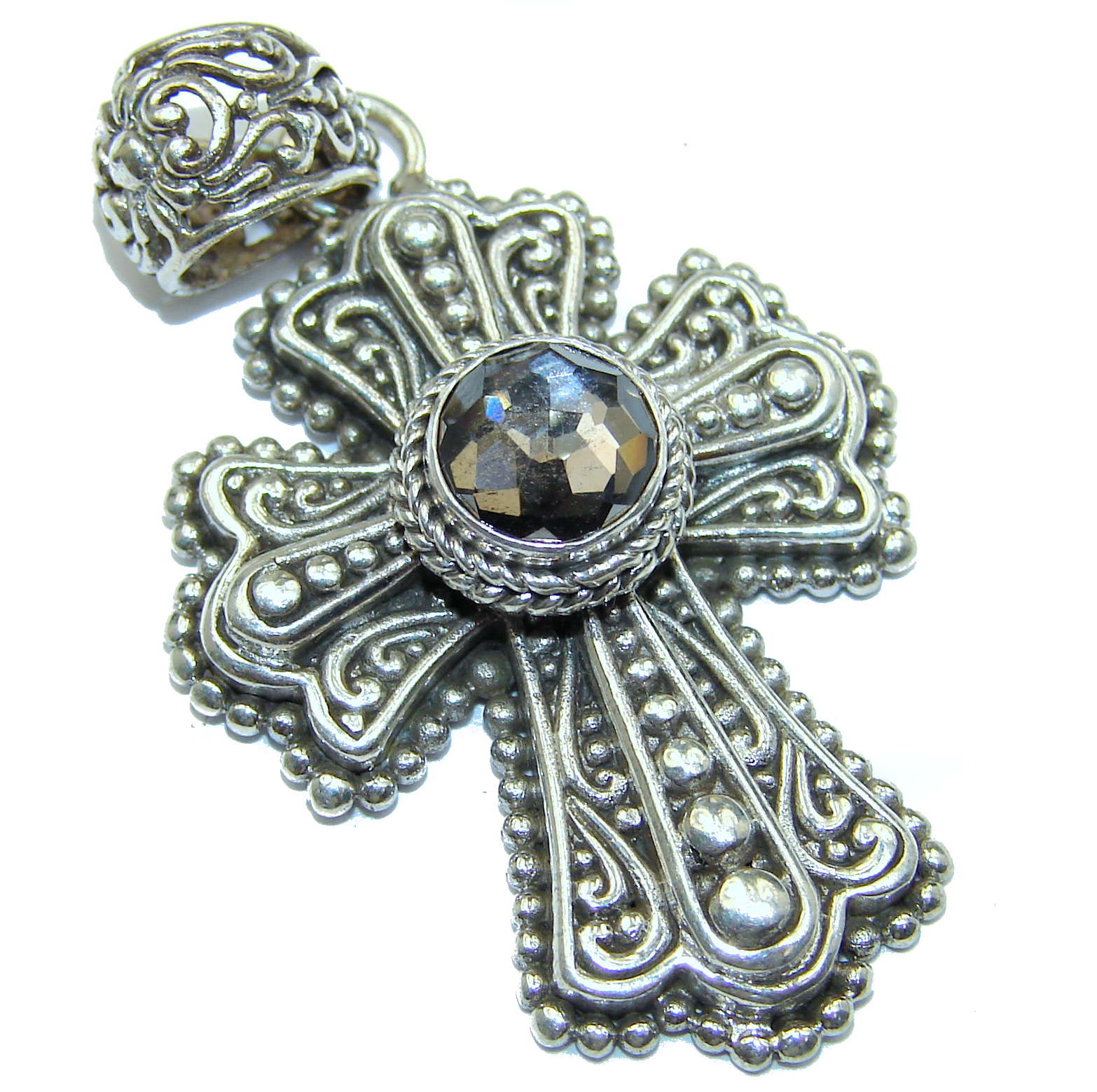Holy Cross genuine Smoky Topaz .925 Sterling Silver handmade pendant