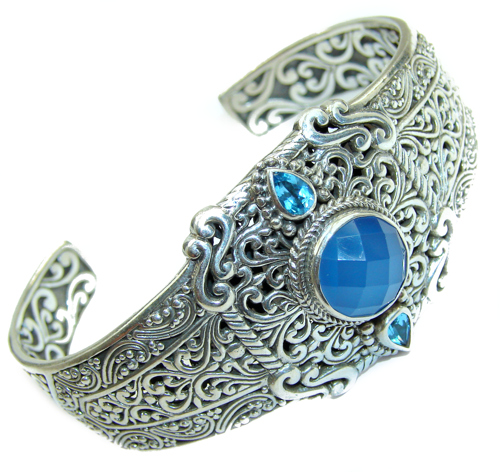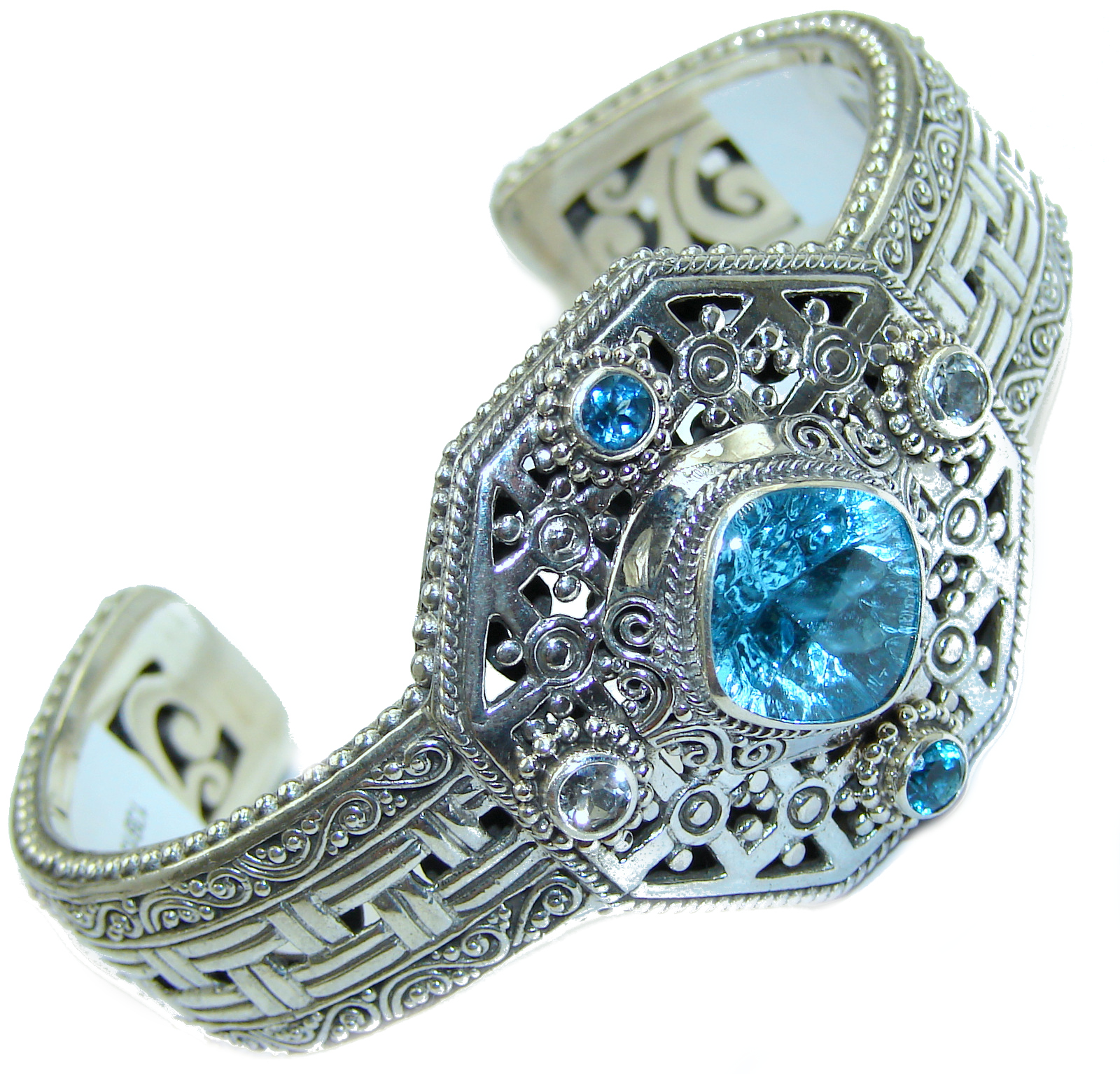 Chunky & Luxury Swiss Blue Topaz .925 Sterling Silver handmade Cuff/Bracelet
