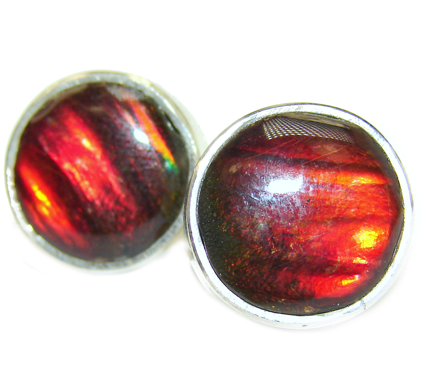 Wild Summer Fire Ammolite 15mm wide .925 Sterling Silver handcrafted earrings