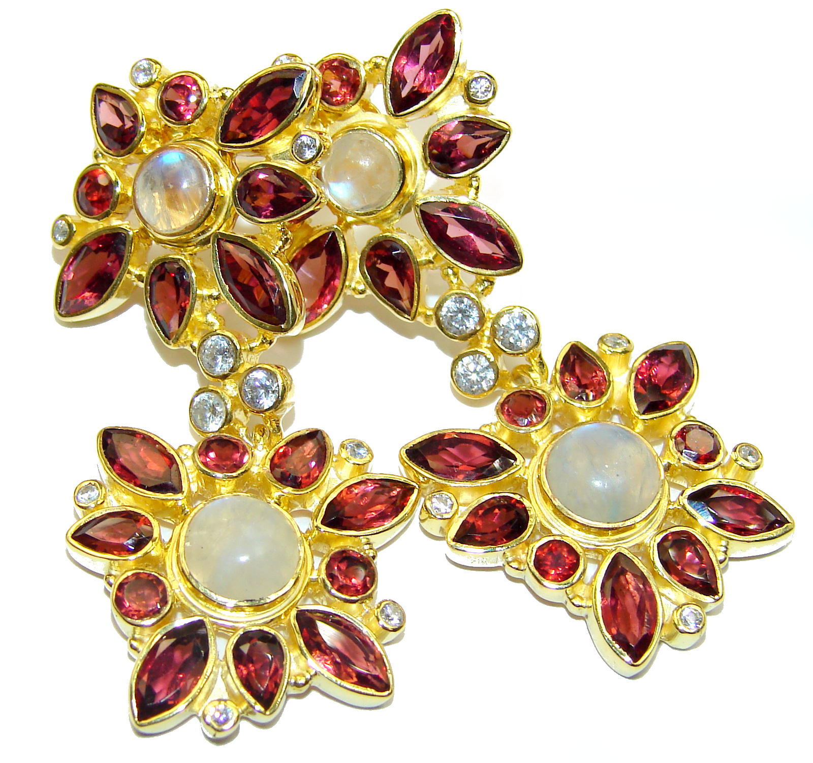 Genuine Fire Moonstone 18K Gold over .925 Sterling Silver handcrafted Earrings