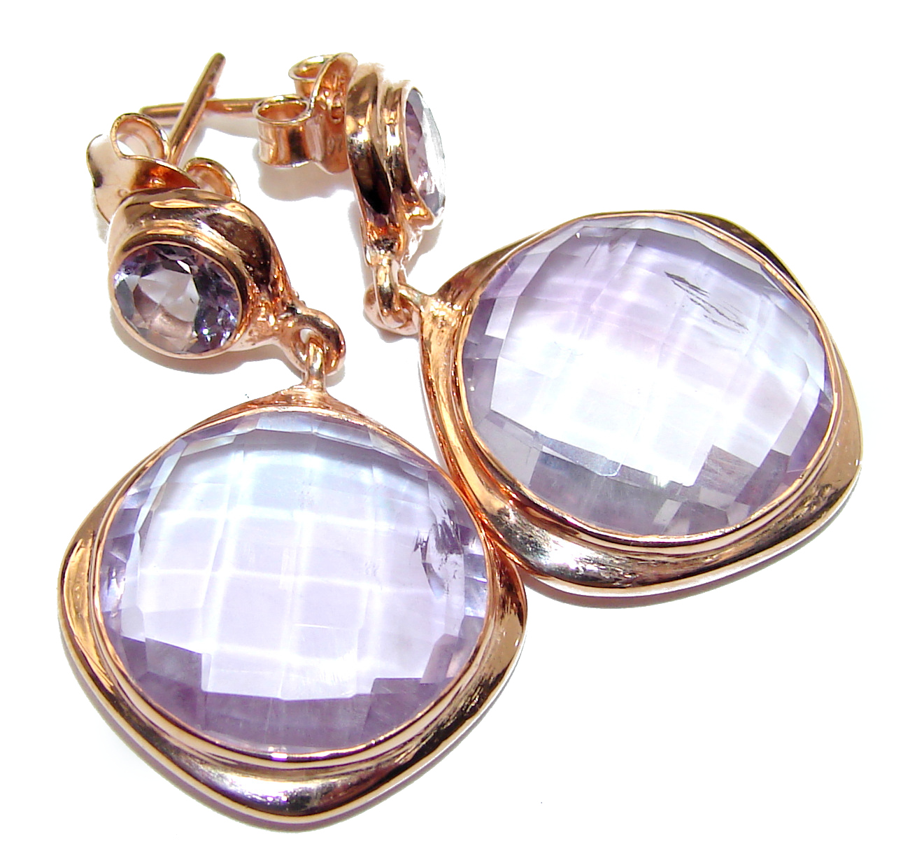 Genuine Pink Amethyst Rose 18K Gold over .925 Sterling Silver handmade Earrings