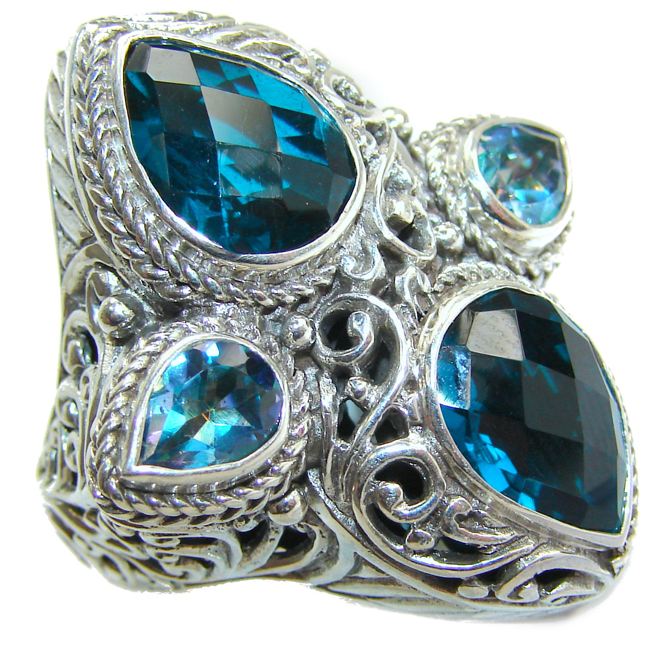 HUGE Top Quality Magic Volcanic Blue Topaz .925 Sterling Silver handcrafted Ring s. 7