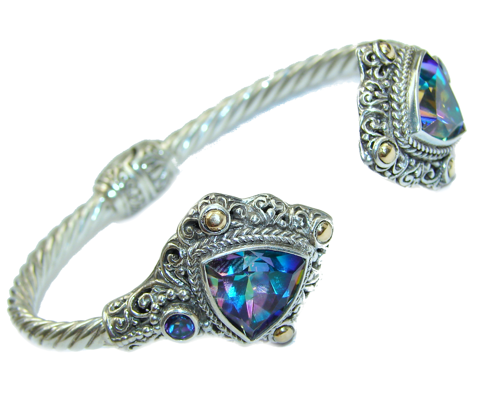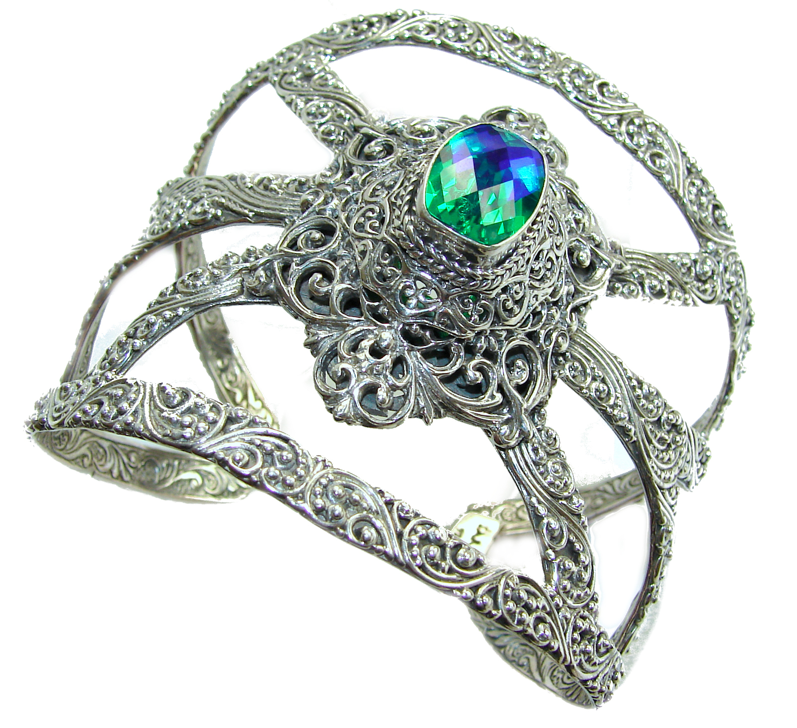 Huge Luxury Volcanic Mystic Topaz Sterling .925 Silver handmade Cuff/Bracelet