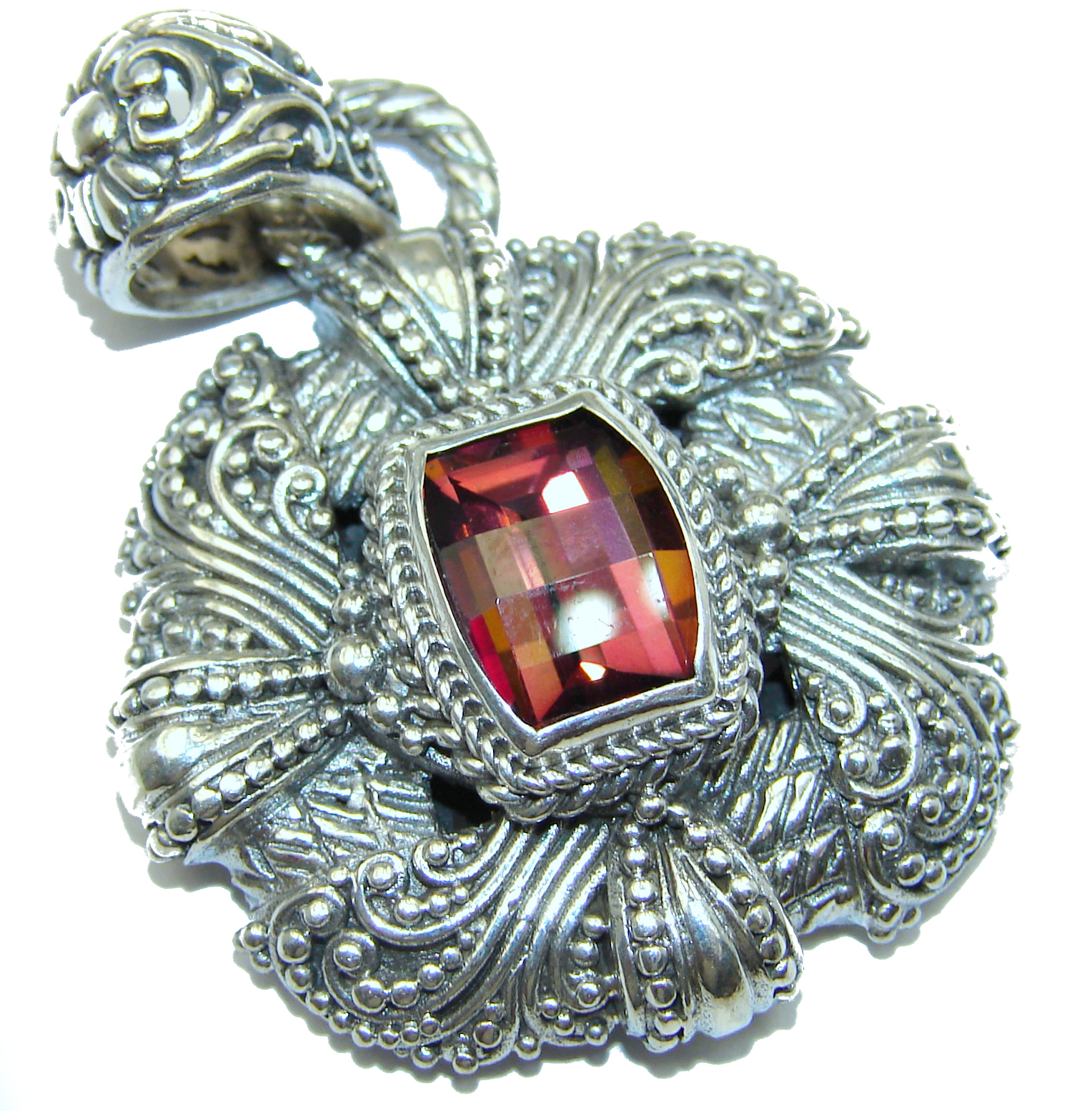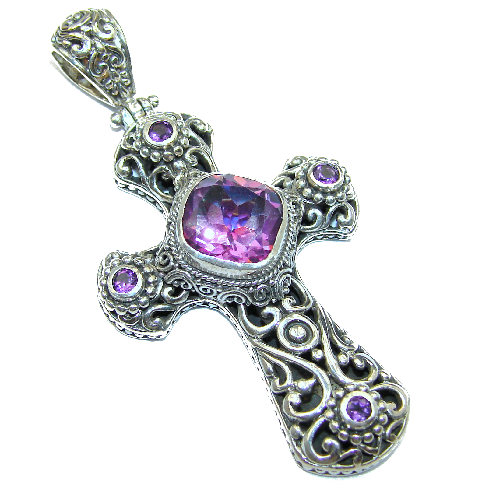 Vintage Design Pink Magic Topaz .925 Sterling Silver handcrafted Pendant