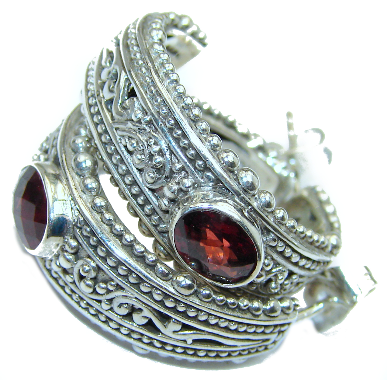 Bali Treasure Red Topaz .925 Sterling Silver handmade earrings