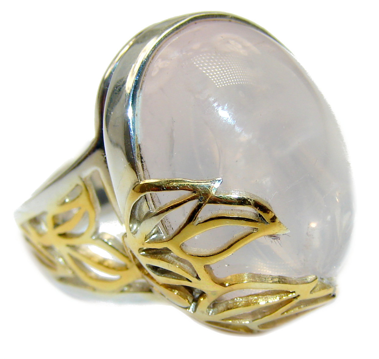 Best Quality Rose Quartz Rose Gold over .925 Sterling Silver handcrafted ring s. 7 adjustable