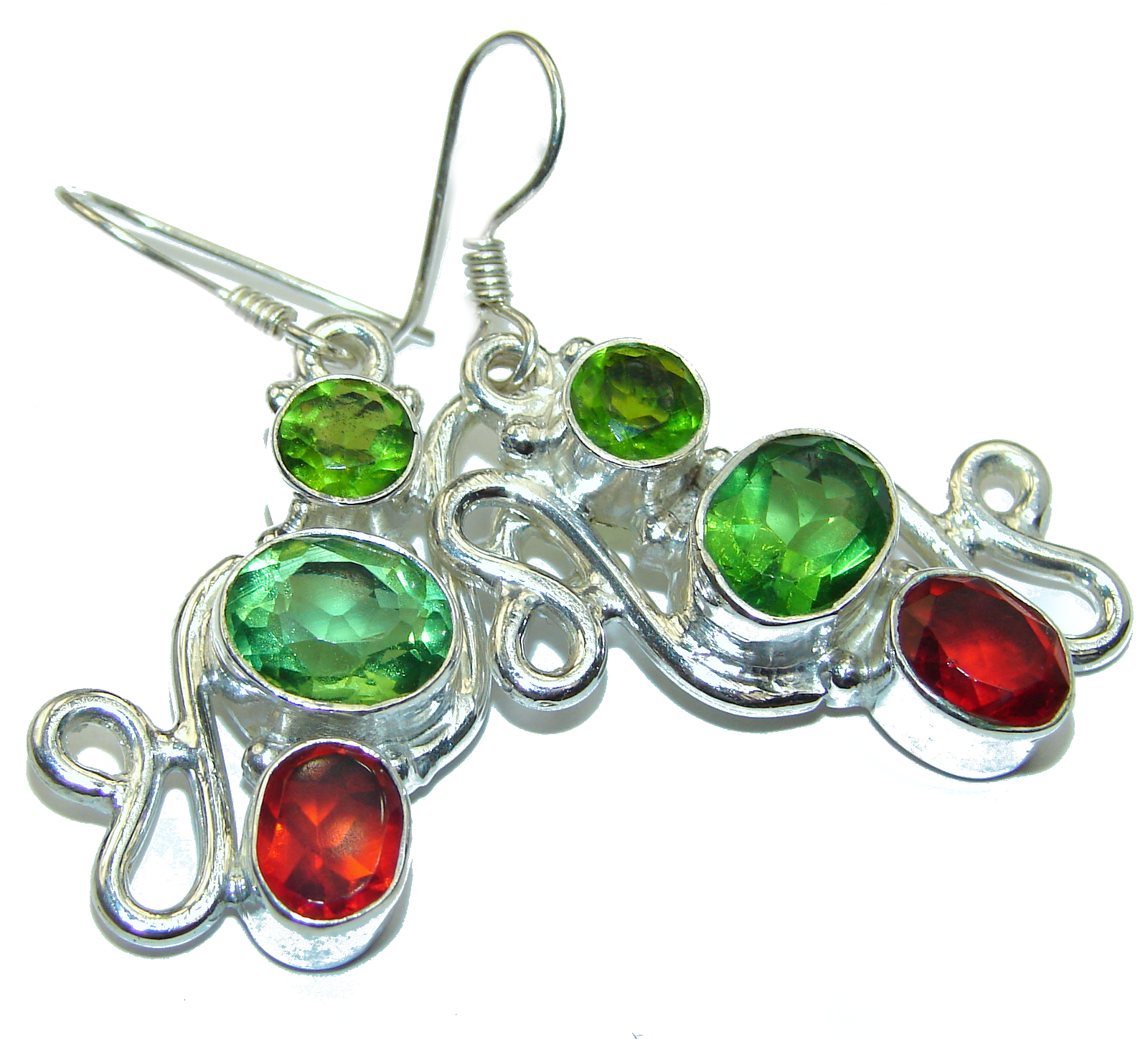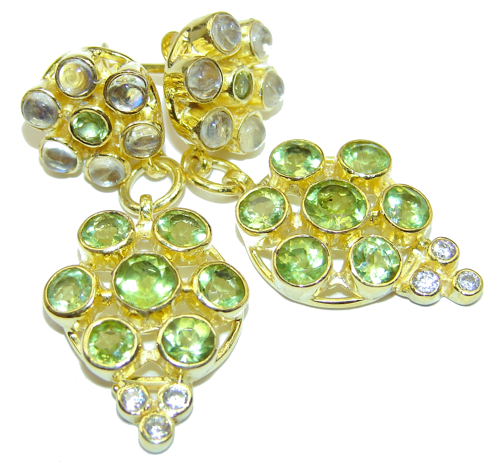 Rich Design Peridot 14K Gold over .925 Sterling Silver handcrafted earrings
