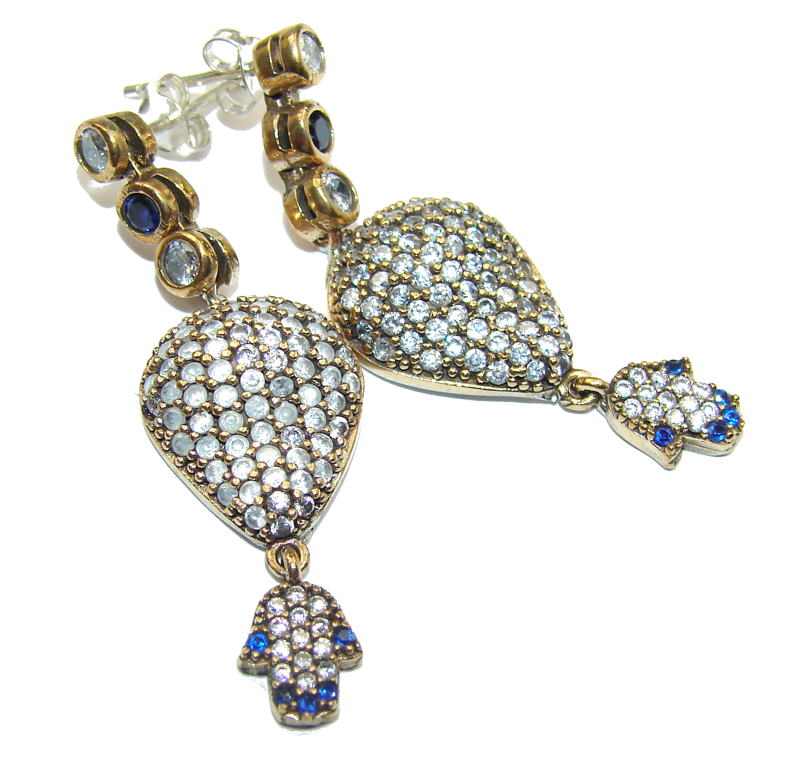 Hamsa Hands white Topaz .925 Sterling Silver handcrafted earrings