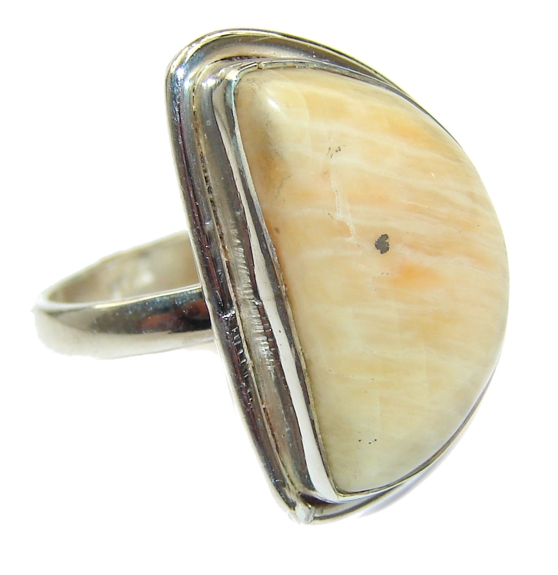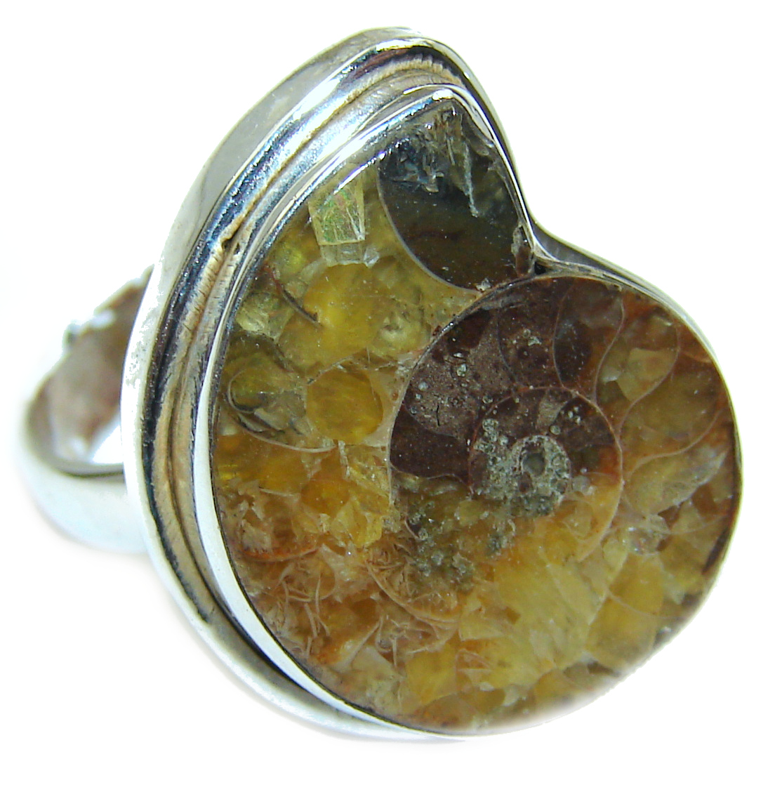 Stylish Brown Ammonite Fossil Sterling Silver Ring s. 7