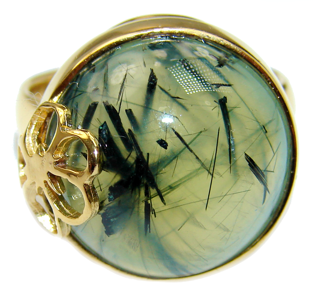 Natural Moss Prehnite 14K Gold over .925 Sterling Silver handmade ring s. 8