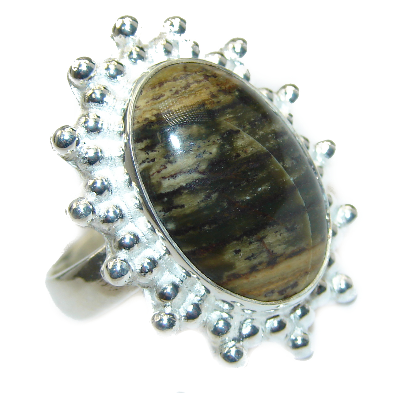 Exotic Agate Sterling Silver Ring s. 6 3/4
