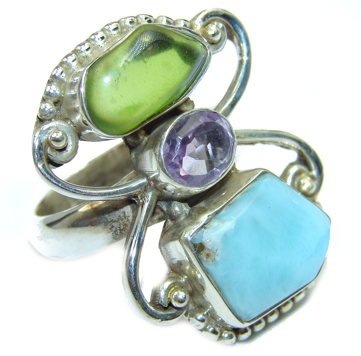 Natural Larimar .925 Sterling Silver handcrafted Ring s. 5 3/4