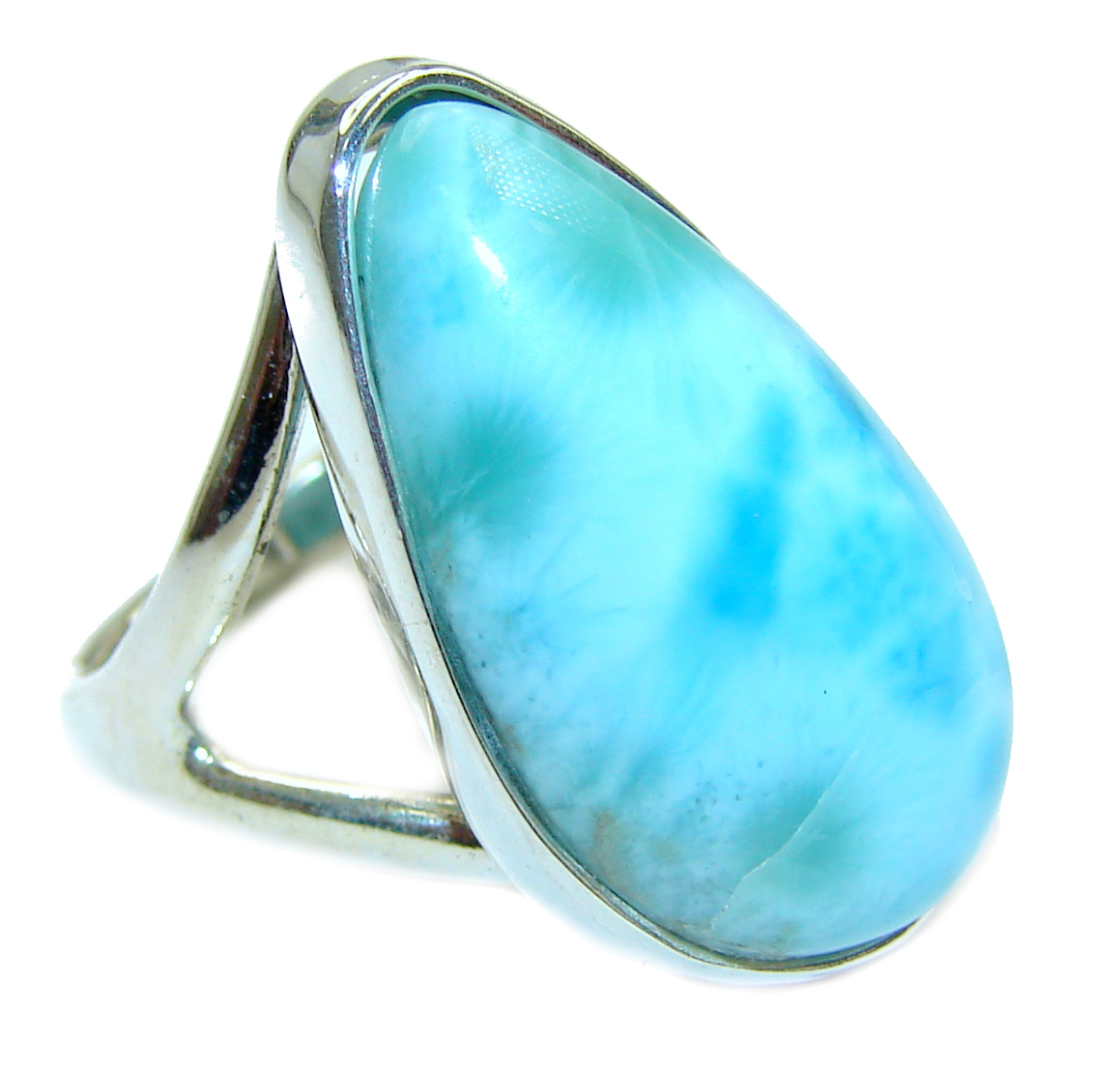 Natural Larimar .925 Sterling Silver handcrafted Ring s. 6 3/4