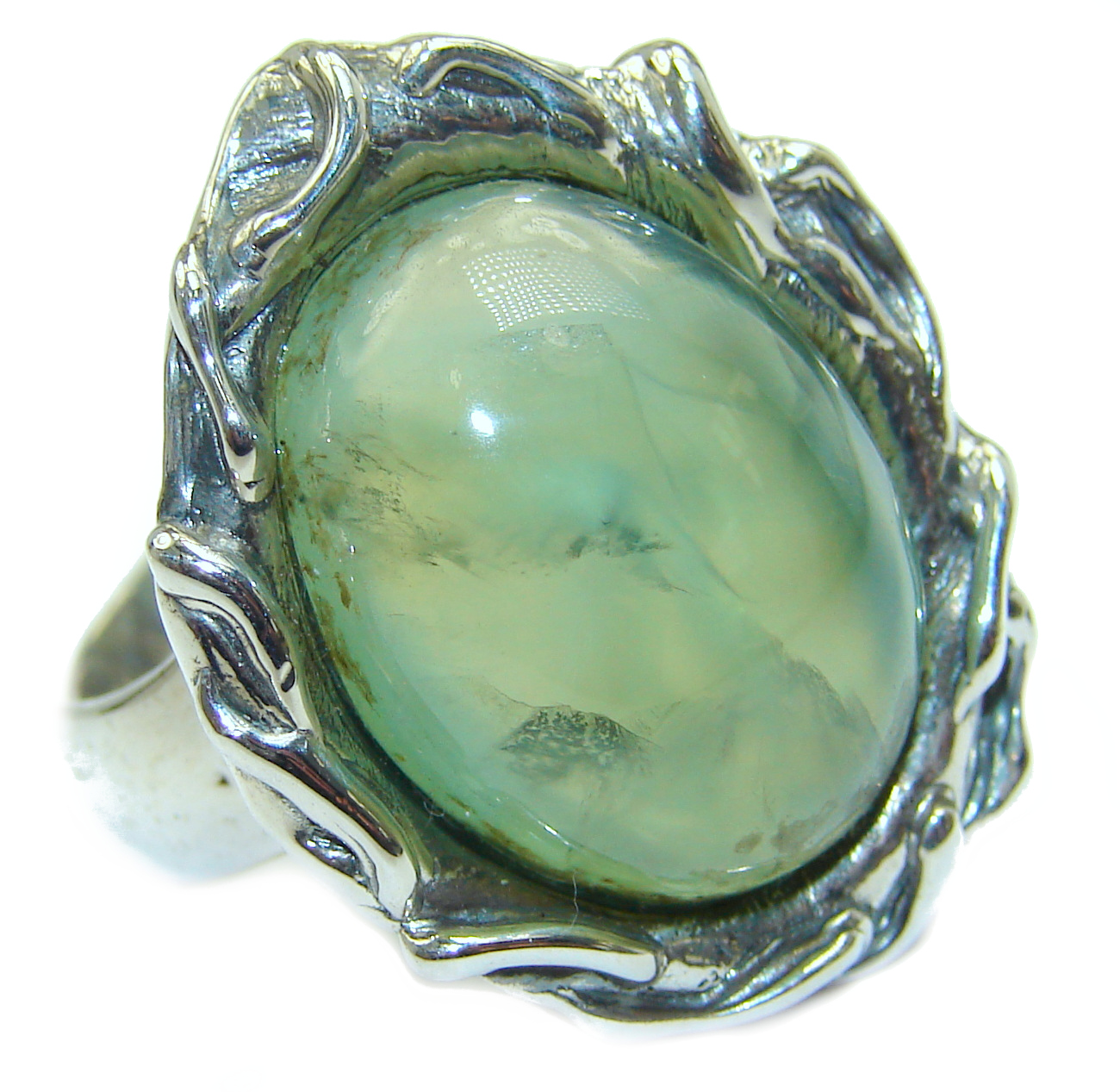 Chunky Natural Moss Prehnite .925 Sterling Silver handmade ring s. 7 adjustable
