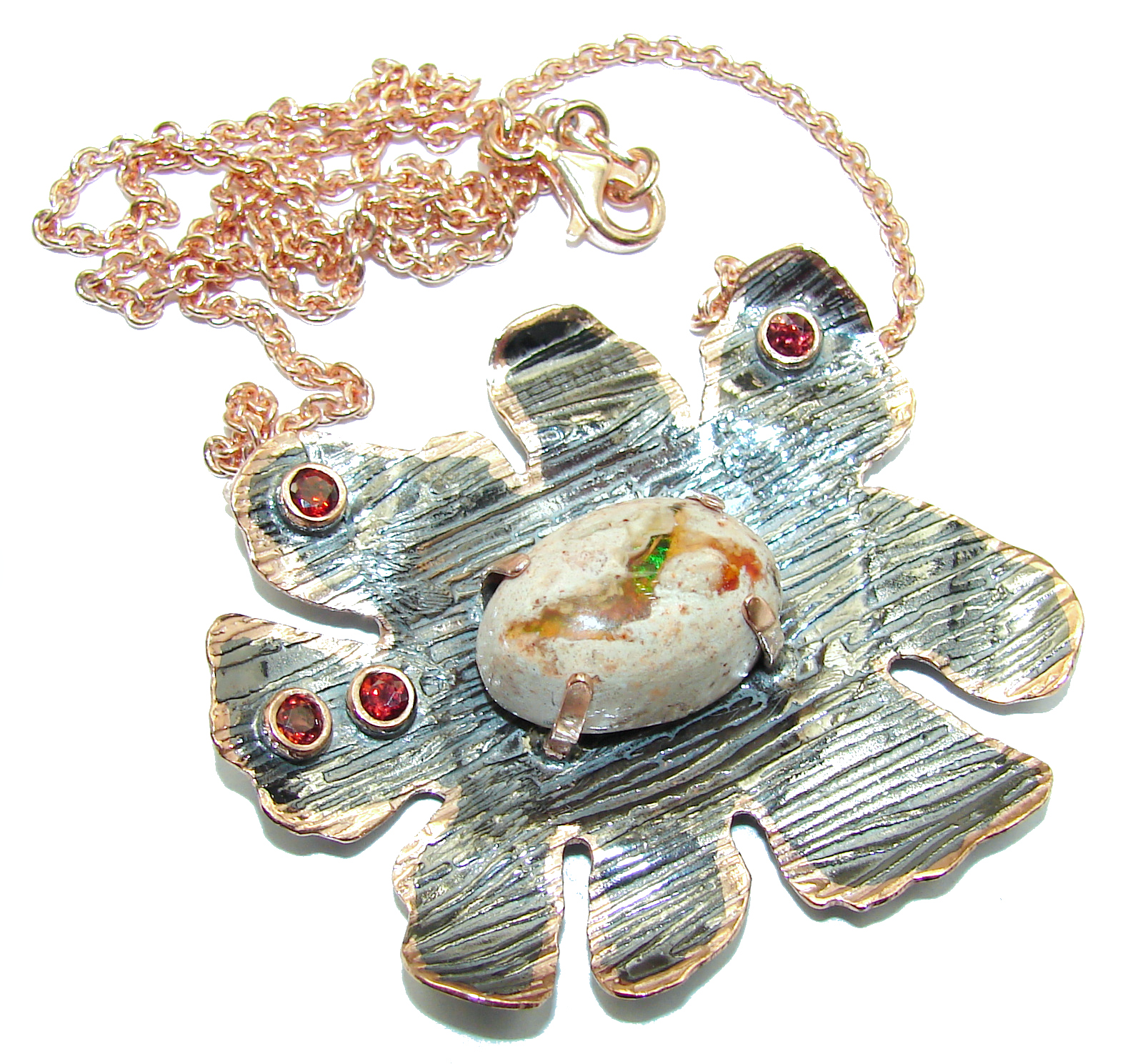 Sweet Heart Mexican Fire Opal Garnet Gold over .925 Sterling Silver handmade Necklace