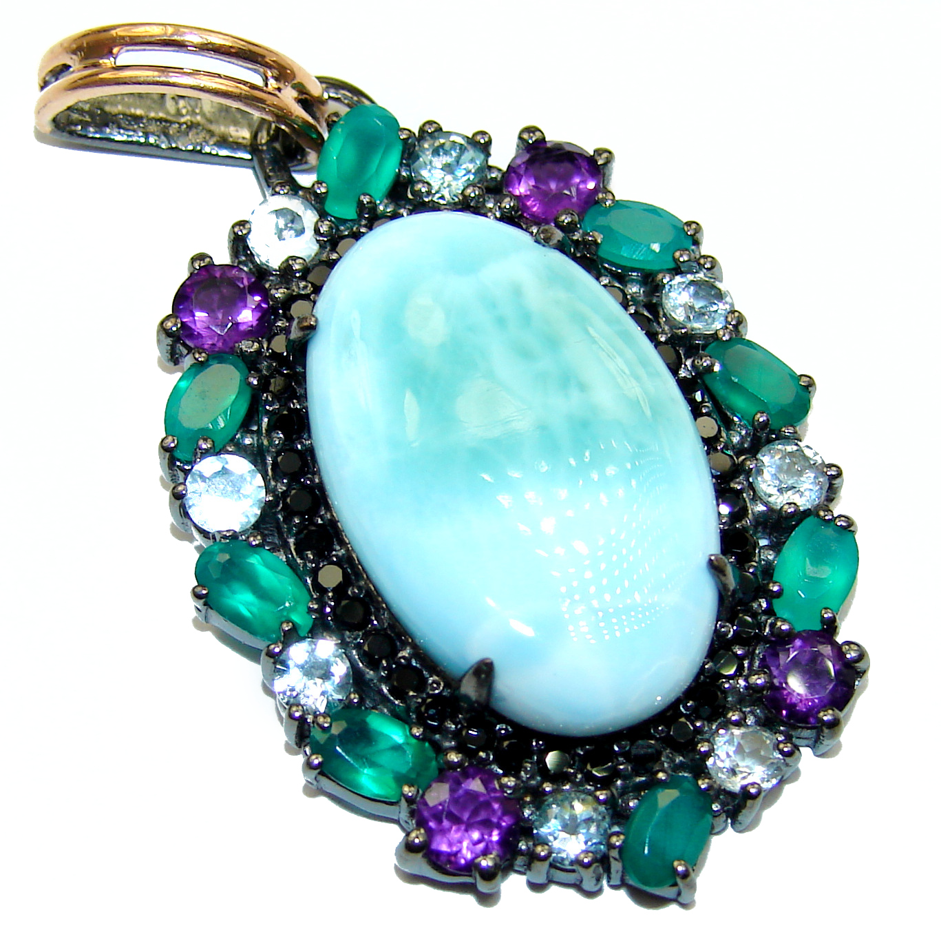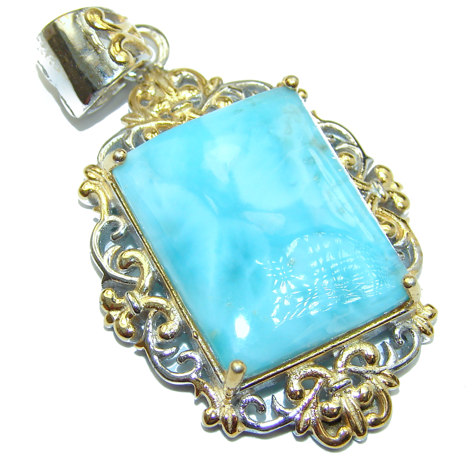 Sublime Beauty Caribbean Sea Larimar two tones .925 Sterling Silver handmade pendant