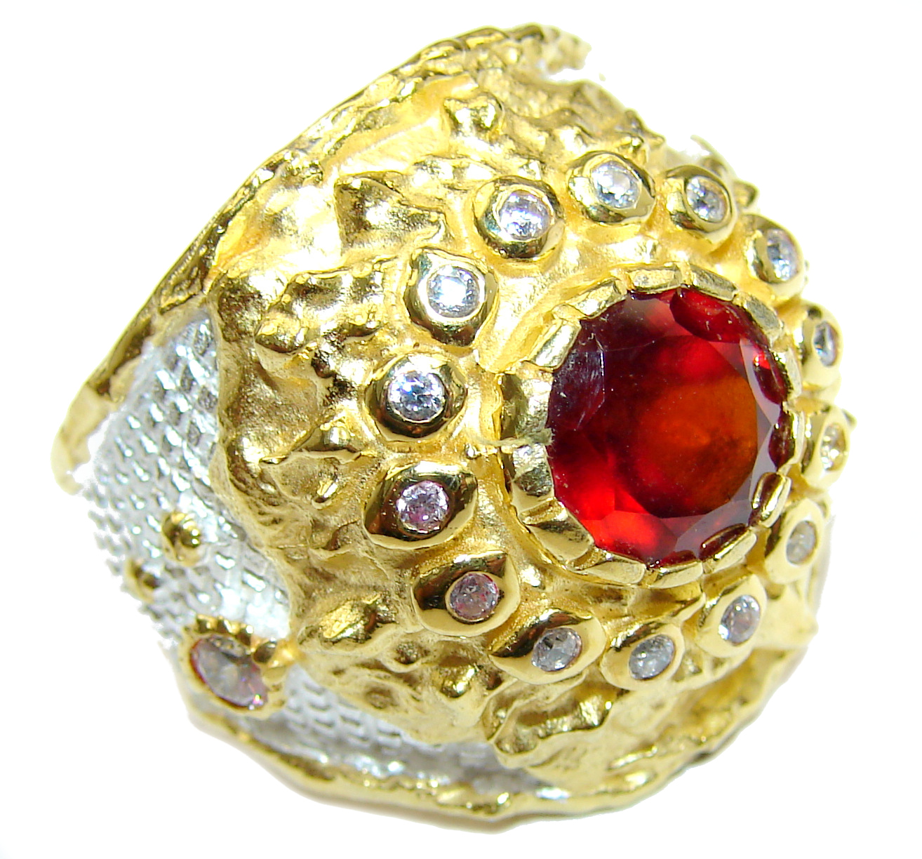 Large genuine Ruby 14K Gold over .925 Sterling Silver Statement Italy made ring; s. 8