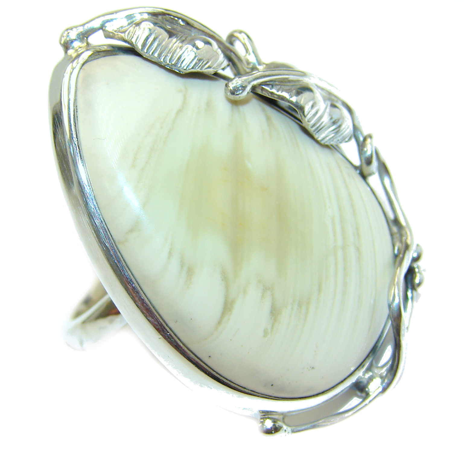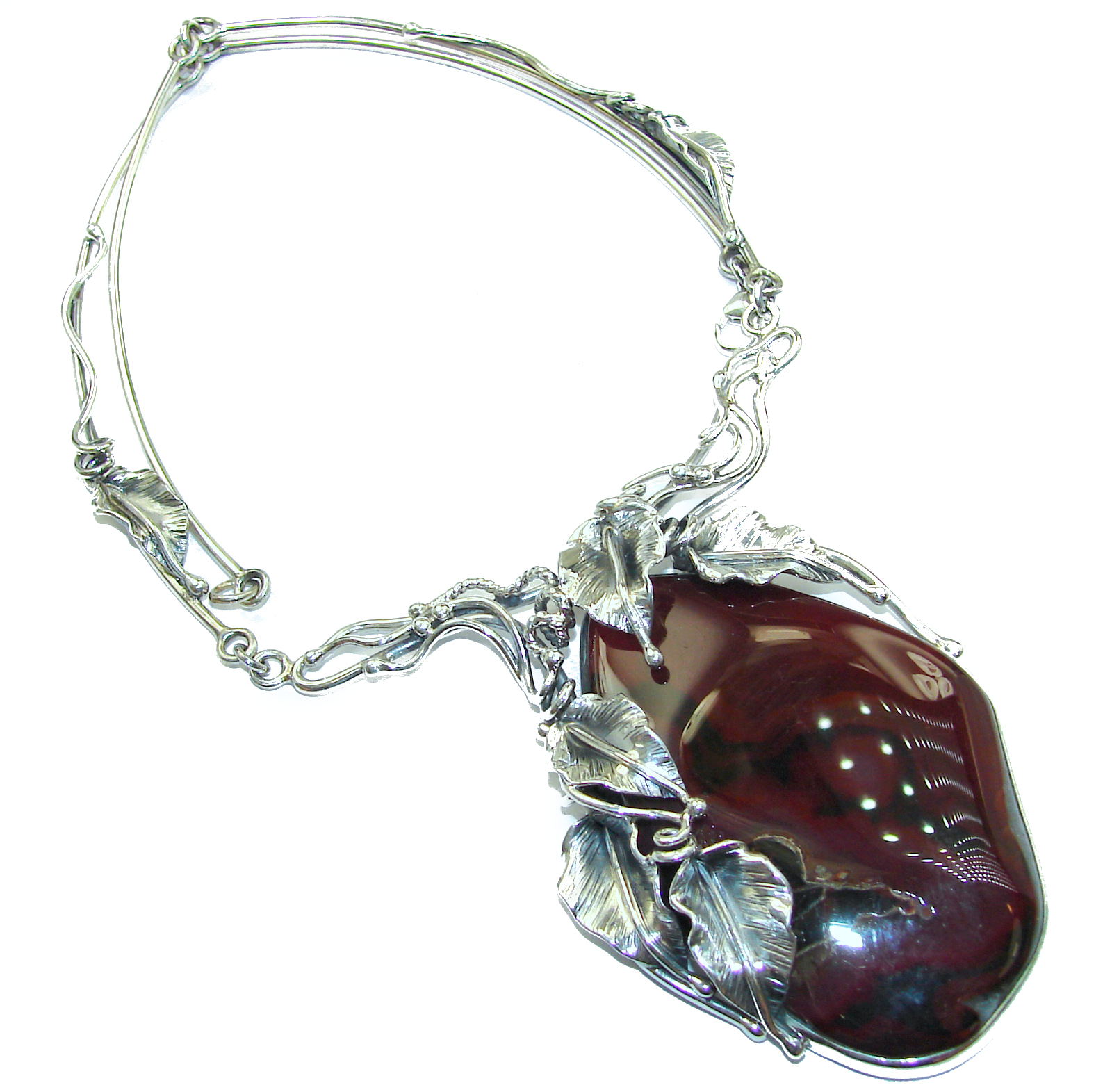 INCREDIBLE- HUGE Floral Design genuine Botswana Agate .925 Sterling Silver handcrafted necklace