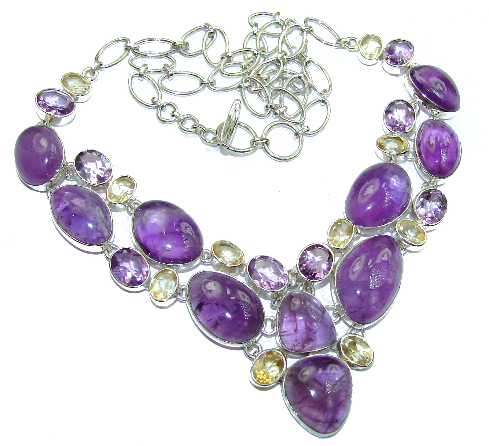 You and Me HUGE Natural Amethyst Citrine .925 Sterling Silver handcrafted necklace