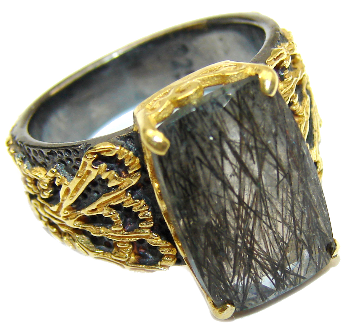 Mysterious Tourmalinated Quartz Gold over .925 Sterling Silver handmad ring s. 7
