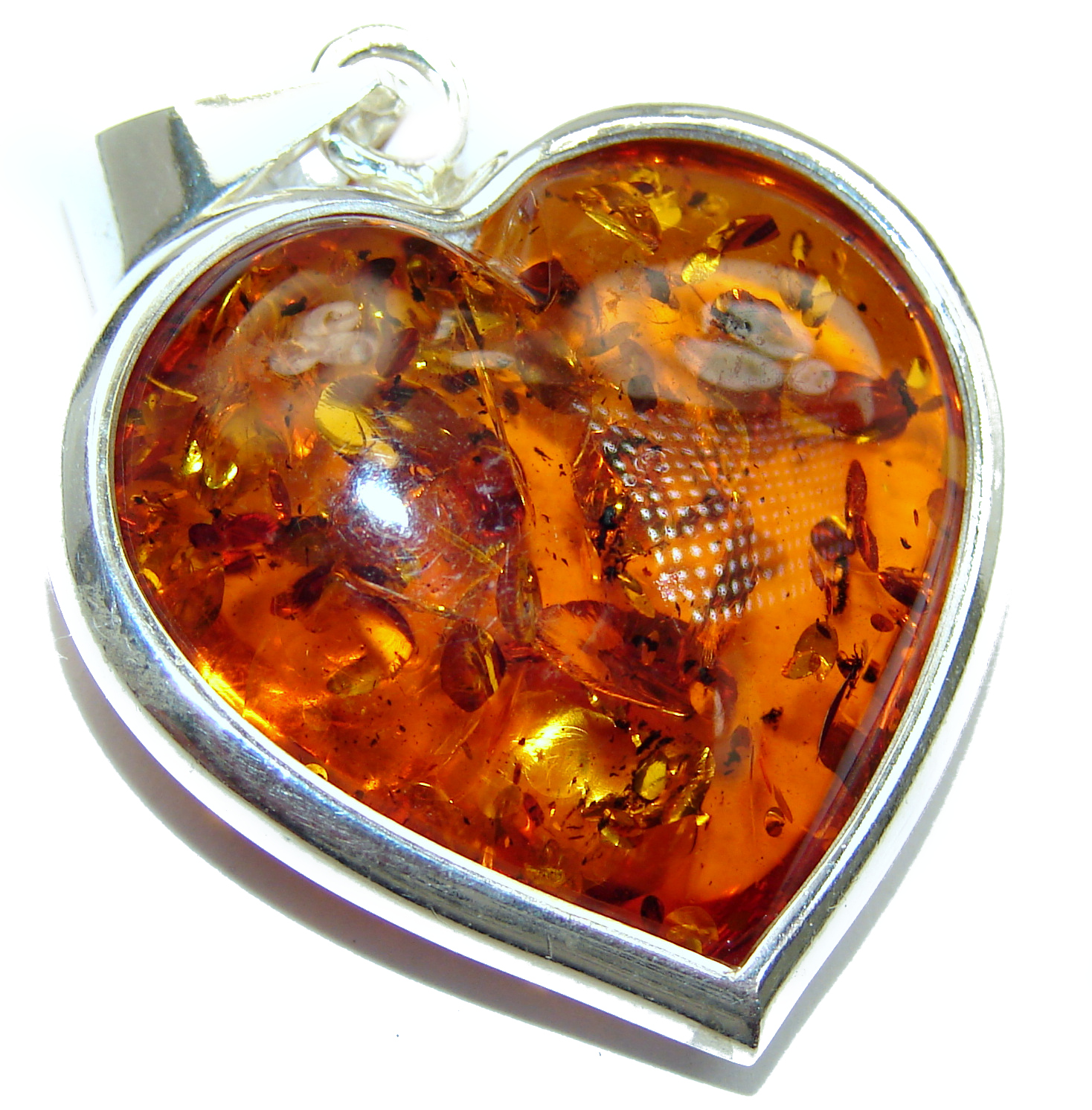 Angel's Heart amazing quality Amber .925 Sterling Silver handmade pendant