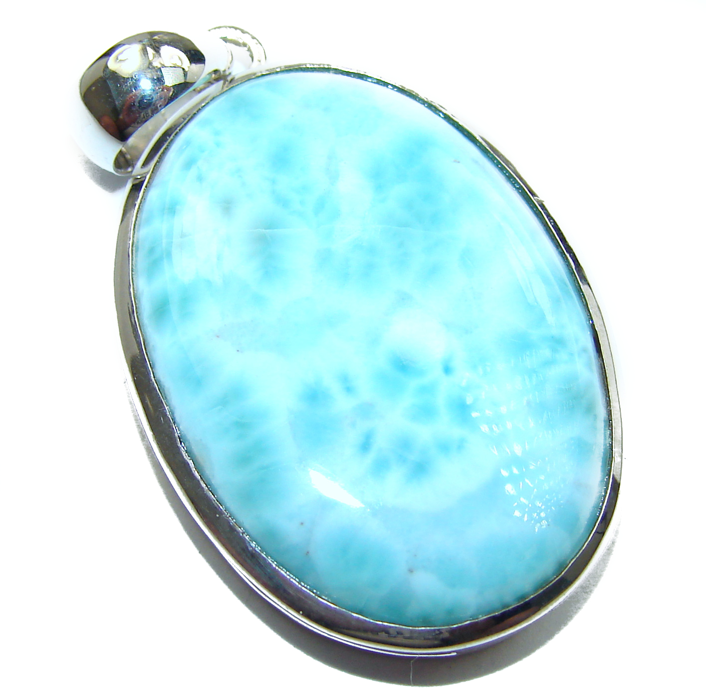Romantic Genuine Blue Larimar Sterling Silver handcrafted Pendant