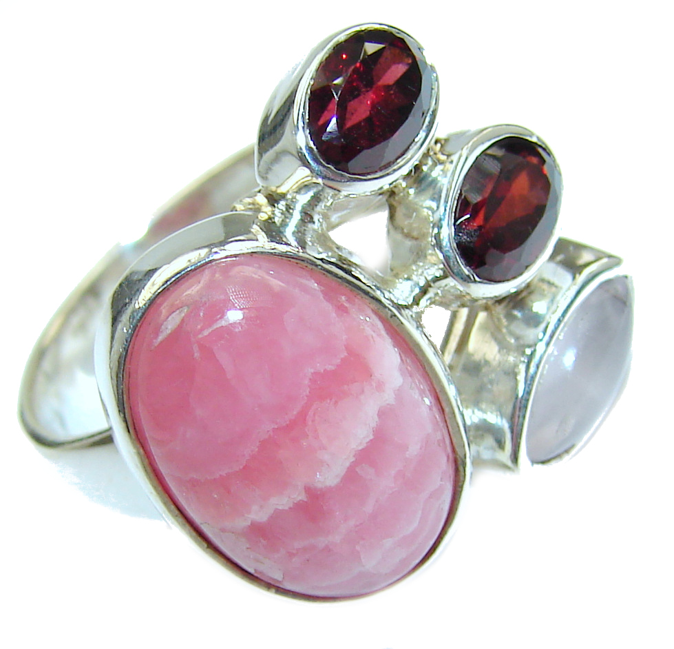 Perfect Rhodochrosite .925 Sterling Silver handmade Ring s. 7 adjustable
